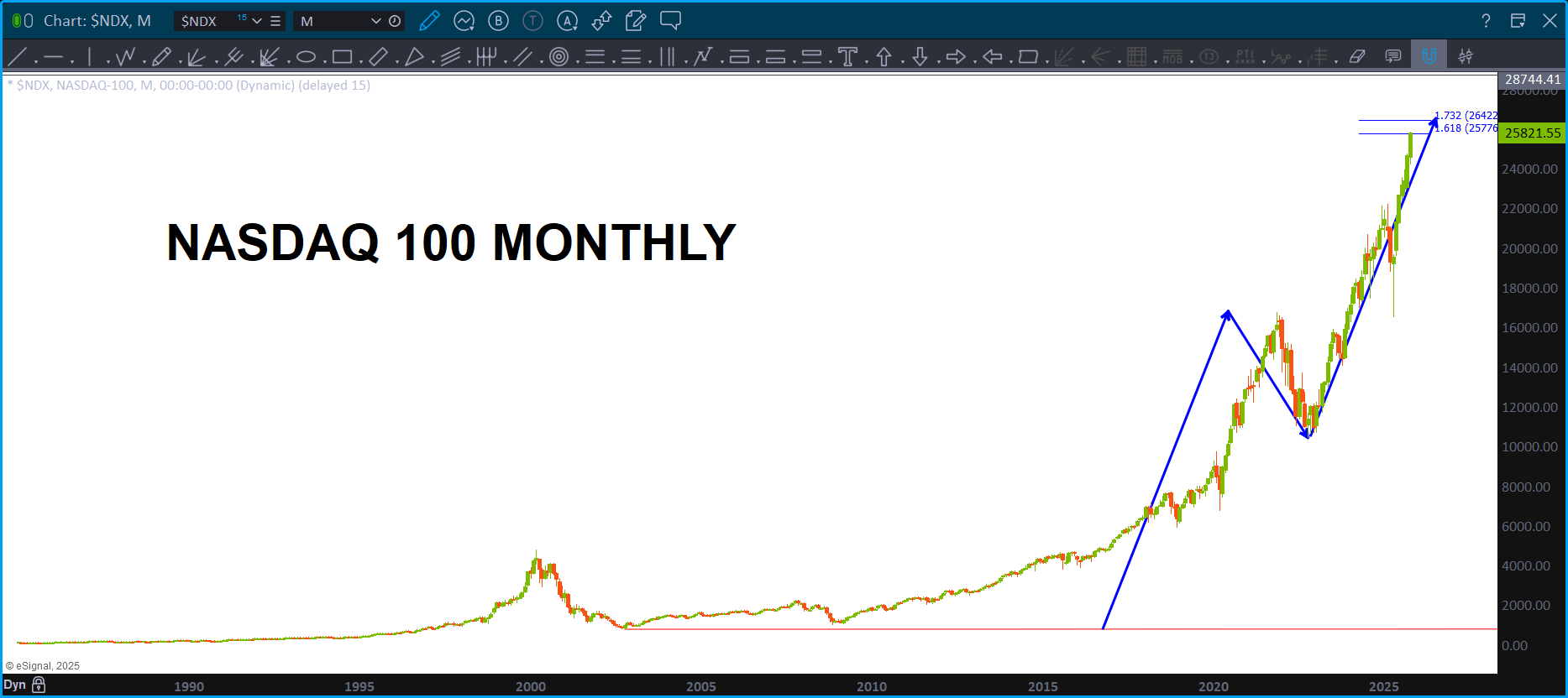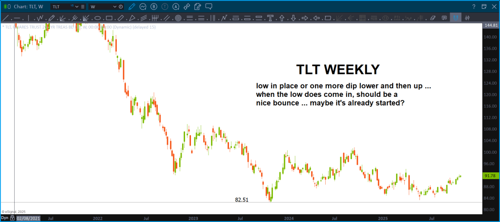 I’ll stay the course … need a WEEKLY close below the “15 year support zone” before initiating a long position.