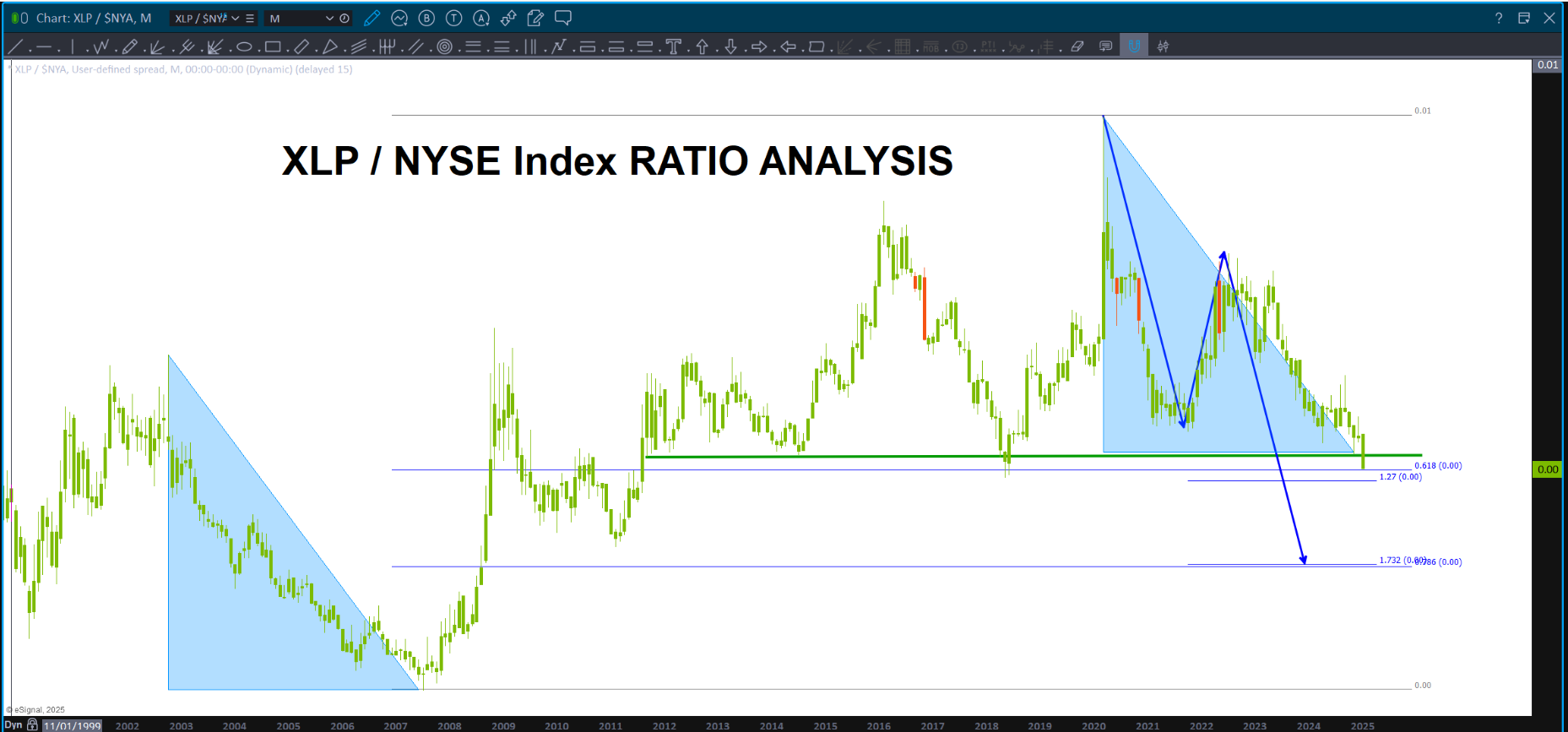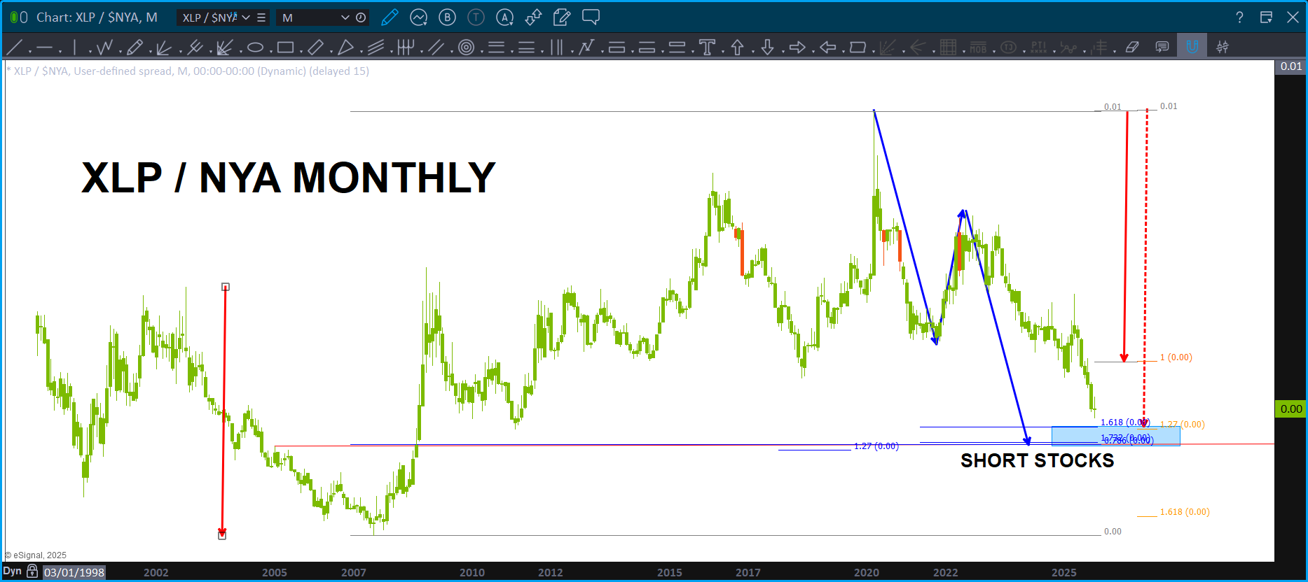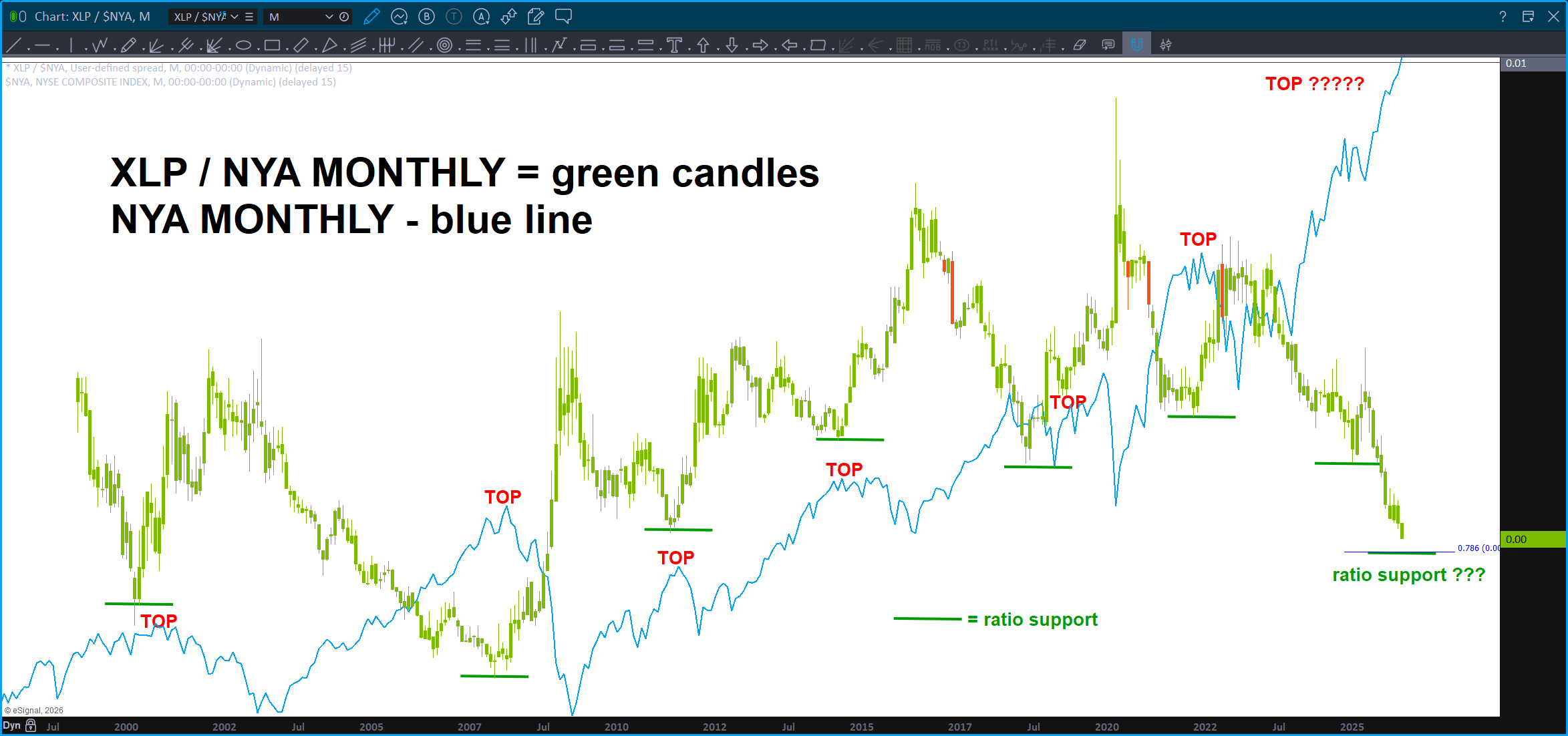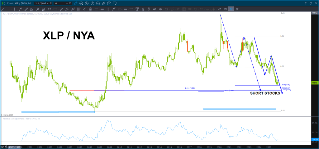 This analysis is wrong if the .786 level on the XLP/NYA breaks down w/ a daily (or weekly for more conservative) close below this level.