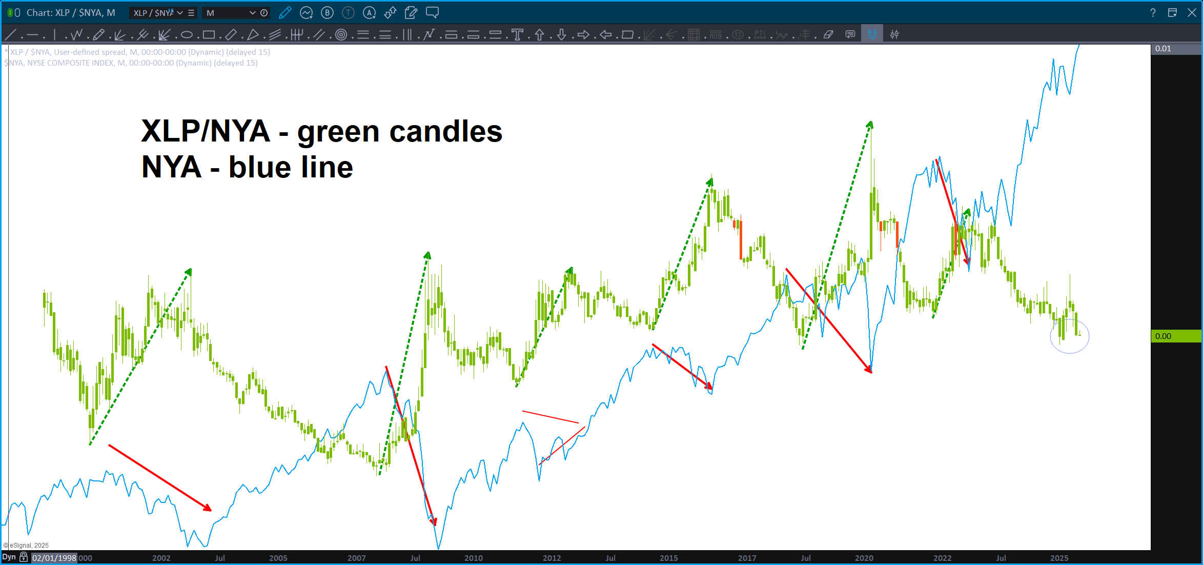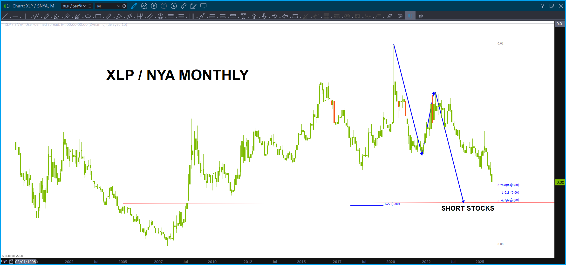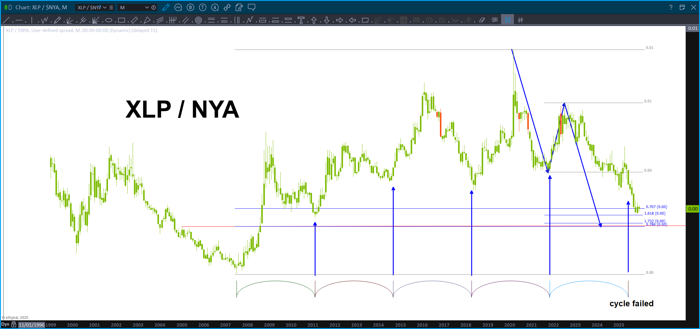 This analysis is wrong if the .786 level on the XLP/NYA breaks down w/ a daily (or weekly for more conservative) close below this level.