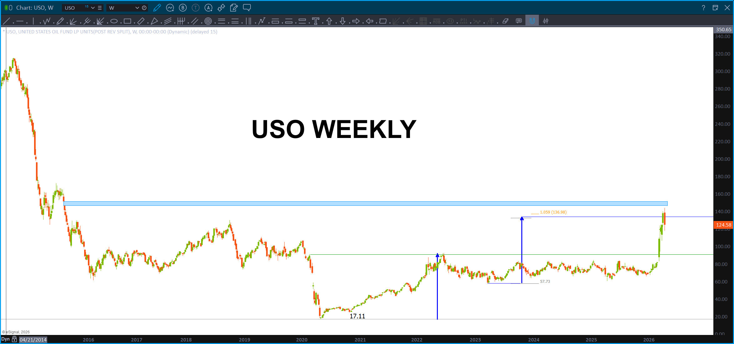 - Blue arrows – represent PRICE measured moves and have been responsible for every up and down move w/in this security. IF (still need to continue surging higher (I DO NOT know if we will or we won’t) we take out the highs then 155 and then 160-162 is the target.