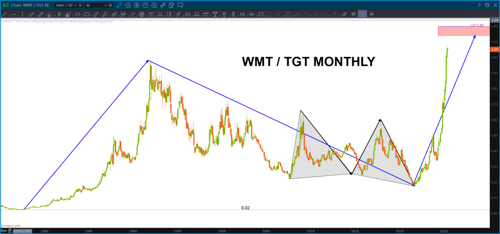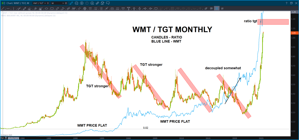 Take a look at the ratio – big target for the ratio. Will that signify some relief for TGT and, potentially, some rotation out of WMT?