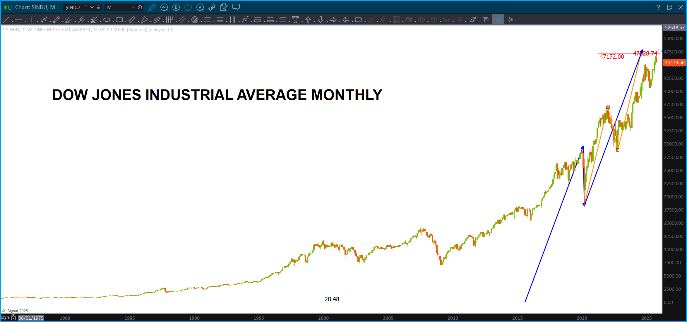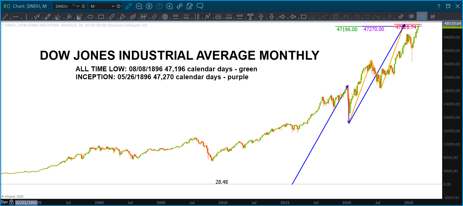 Figured I put this one out there … the Global Dow. What am I missing … sure looks like in the life of this index, there hasn’t been one move higher than the blue measured move.