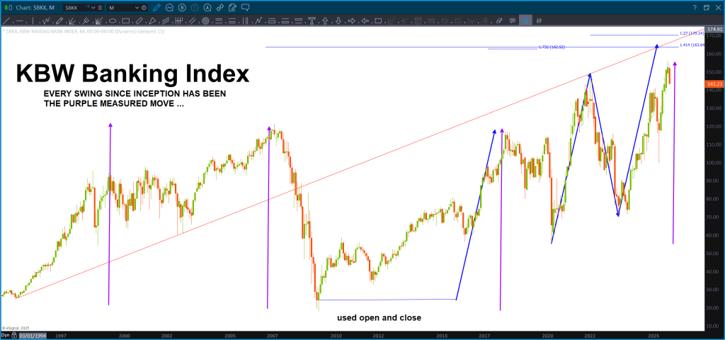 My last post on the KBW showed 139 as the key resistance based on a measured move target. The high being hit on February 7, 2025.