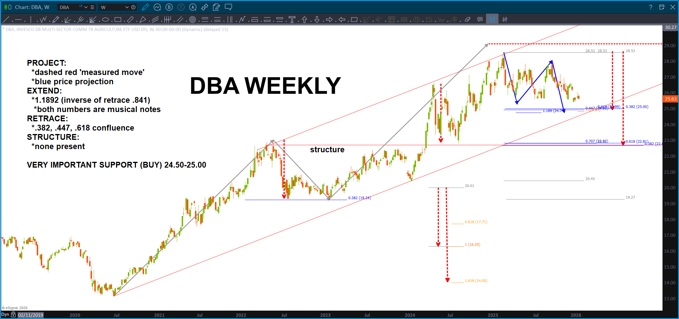 Here’s a fun one – DBA. I’m still long from the low and am thinking higher but we did just finish and ABCD (or close) … two key levels.