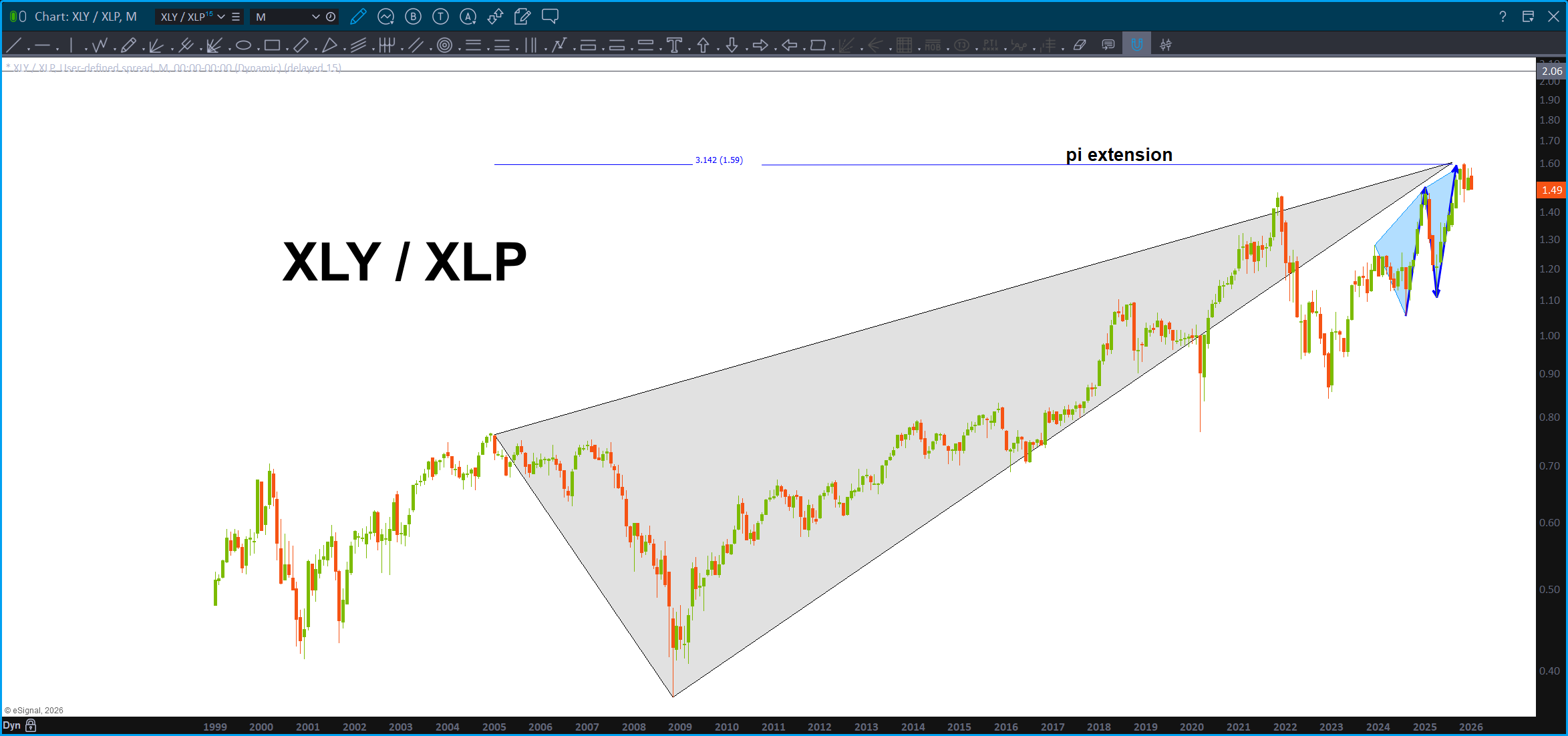 Let’s just consider the pattern on the XLP/NYA complete. Which means, support has been found on the XLP/NYA ratio: