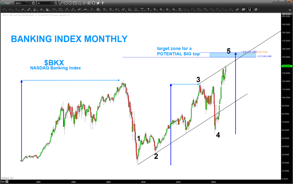 Shown this one a couple times … certainly looks like we are getting or at the VERY crucial resistance level on the KBW.