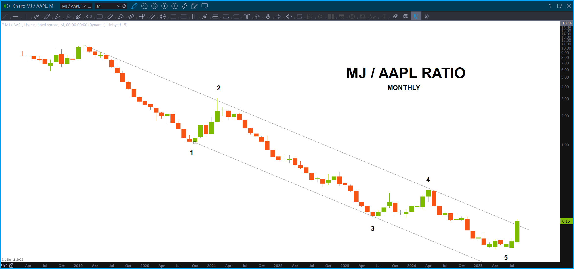 MJ (Cannabis ETF) / APPL – never thought I would see this one …