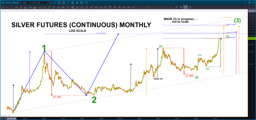 Folks, not even going to pretend I know what direction Silver is going to go or IF my thesis about the first wave (of a lot more) in Bitcoin being complete and if MSTR is going to hold this major pattern. I don’t. They are just patterns and I’m trying to connect the dots the best I can. My frustration is “time” in that I know I could figure out the synthesis of time but, honestly, I’m waiting for a technology to appear and then I’m going to DUMP all of what I’ve studied the past 24 years into it and, I honestly think, it will be unlike anything ‘out there.’