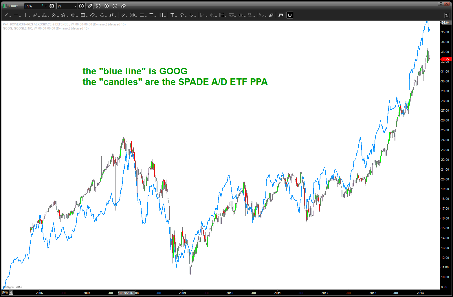 Cliff Notes: they are showing sell patterns and we have visited the correlation of the Defense Index ($DFI // PPA) and GOOG before ….