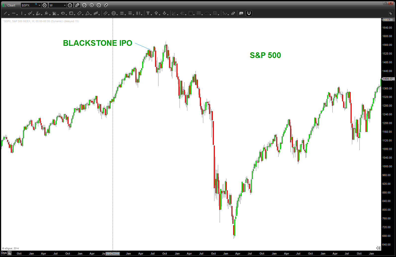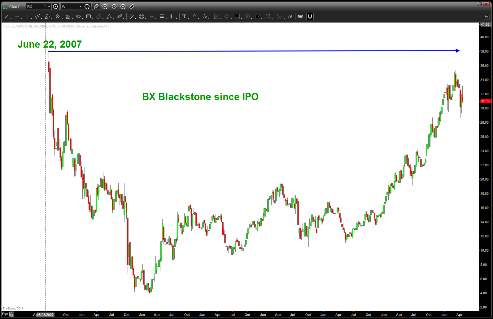 this sure is an amazing dance to watch … kind of reminds me of the Blackstone (BX) IPO . These two charts should tell you the story: