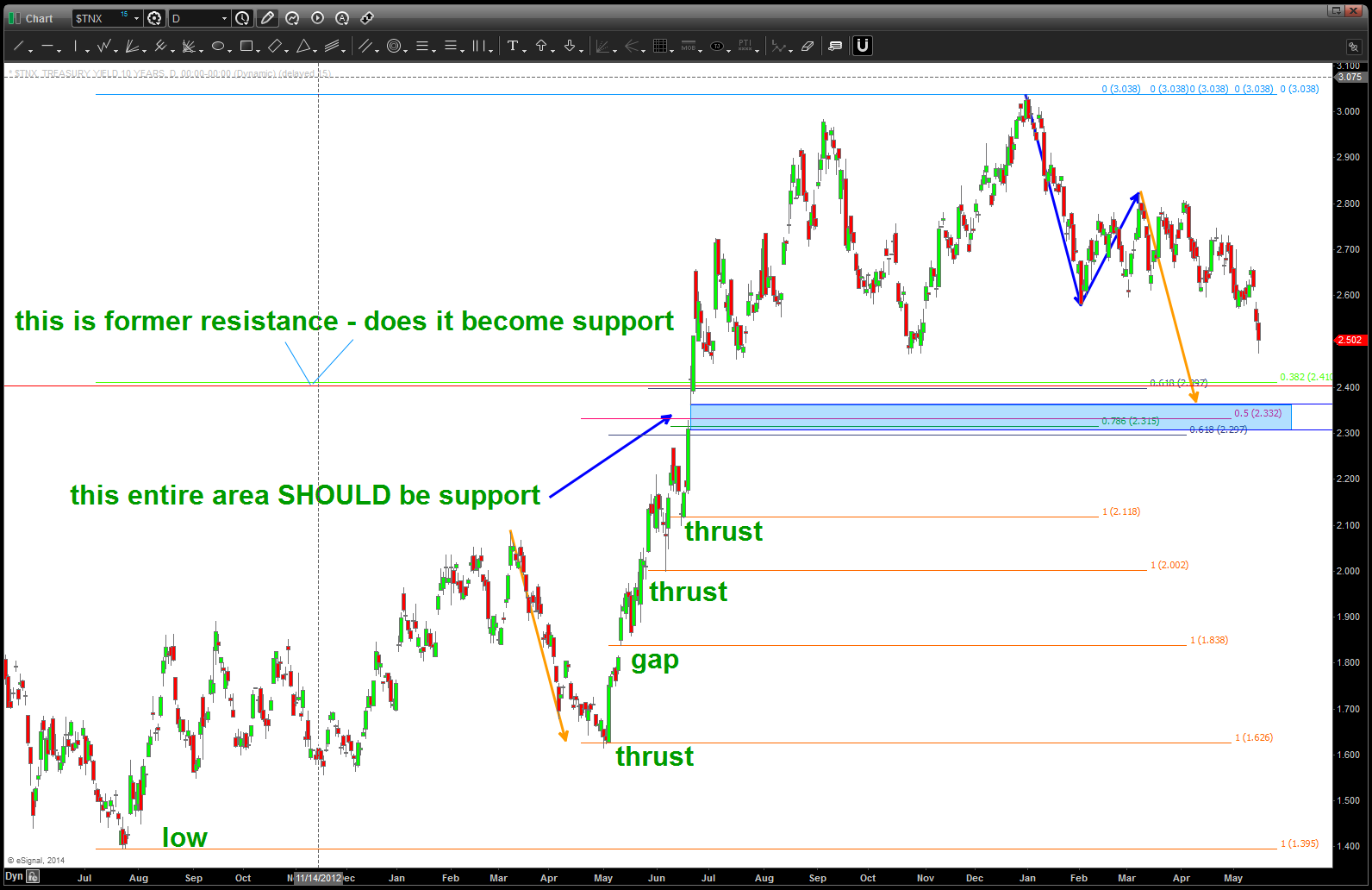 CLIFF NOTES: target hit on the long bond, last target hit on TBT, RYJUX hitting some key support. No doubt the move up from the neckline and multi month consolidation is a big deal and now we’ll see if the neckline is attacked as we are suggesting. Note, it already came down and bounced off the neckline for a very nice LONG Bond opportunity. W/ this many patterns completing there is, of course 1 of 2 things that are going to occur … THEY WORK or DO NOT WORK.