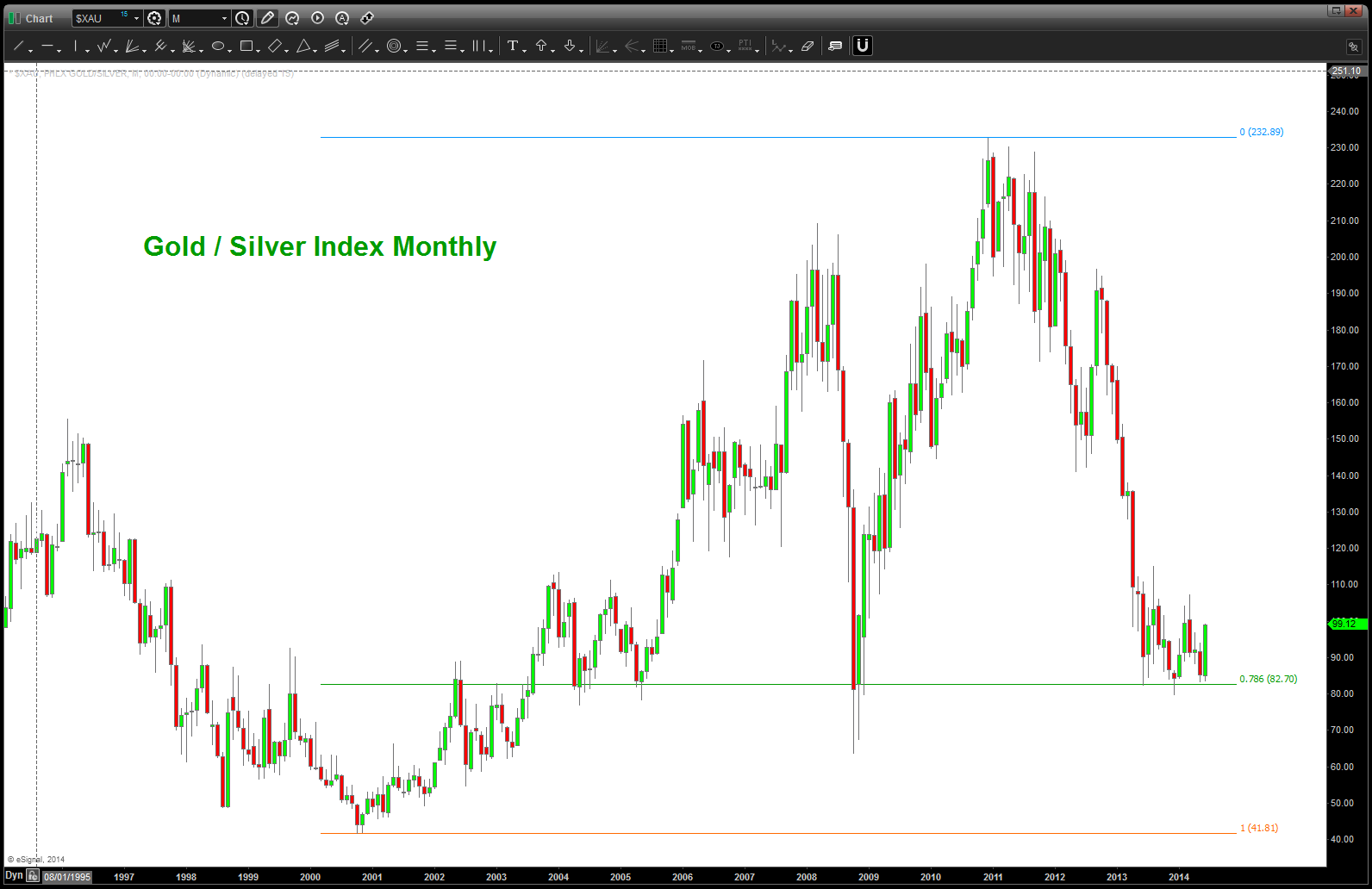 CLIFF NOTES 3: note the first chart. Again, it’s ratio analysis of GLD vs SPY. What we are looking for is a PATTERN to show a SHIFT in the relative strength of one security versus another. In this case, the S&P 500 has out performed, tremendously, the GLD since 08/2011. But look what just happened .. we completed a pattern at the .786 and 3 weeks ago,we found support and NOW it’s starting to move UP along w/ SPOT GOLD, ABX and the overarching Gold/Silver Index. A key development …