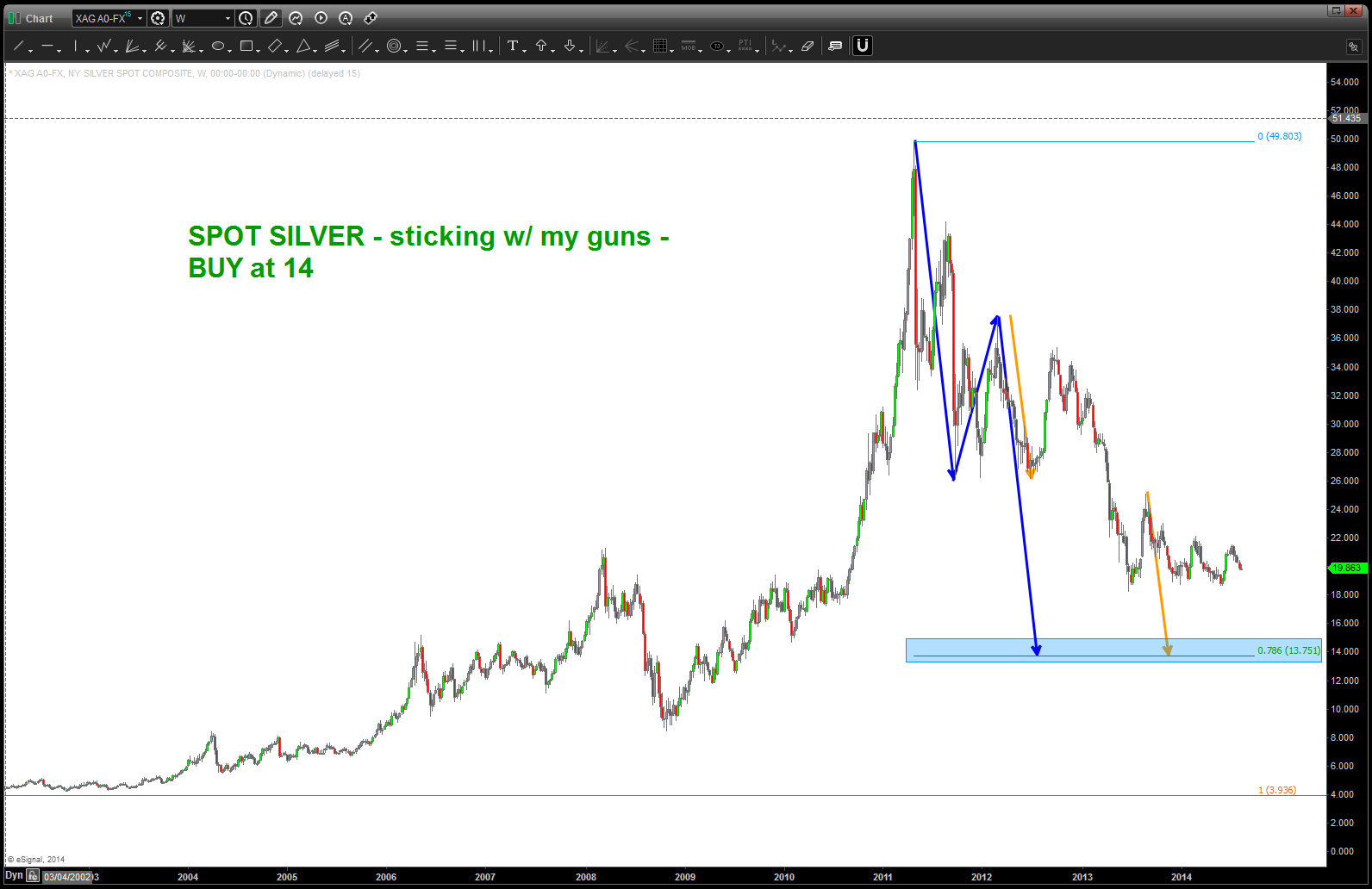 if we do break that level – look for 950-1000. Spot silver – sticking w/ my guns here and a buy at 14.