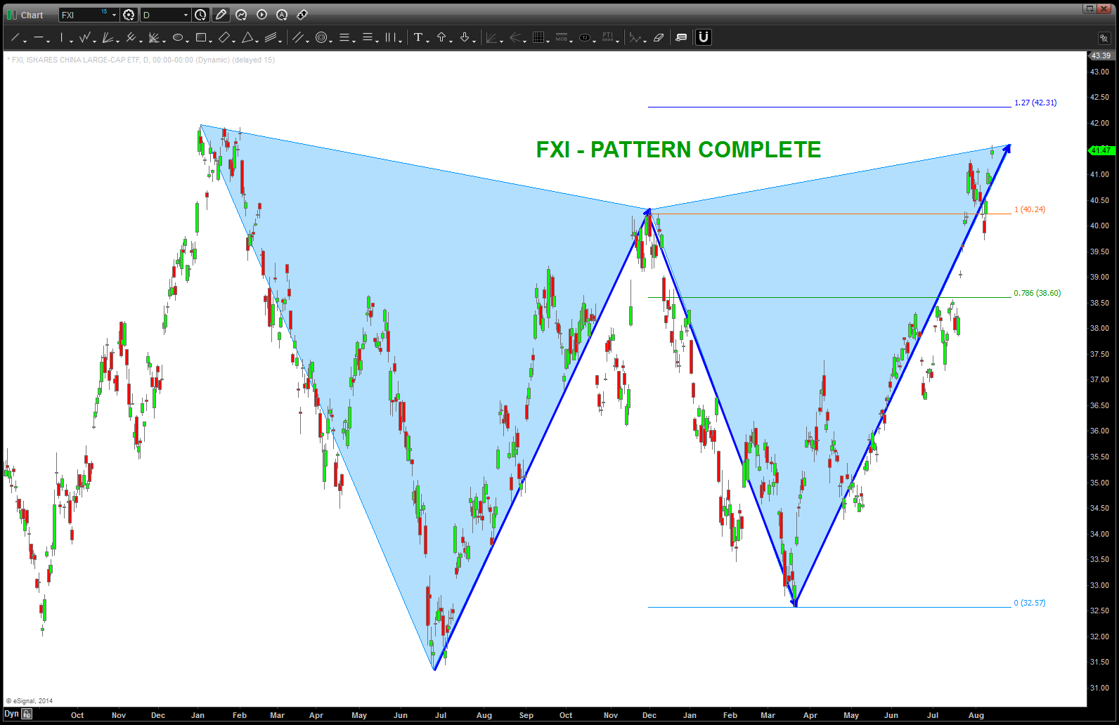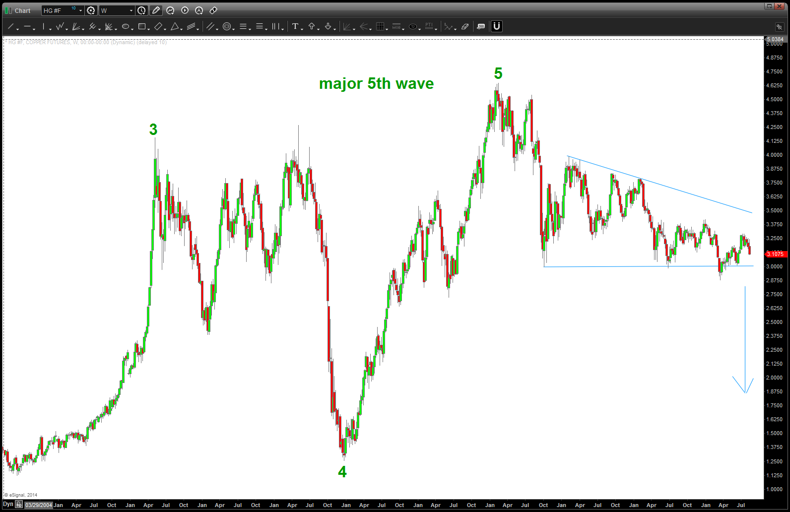 Copper – folks, still sticking w/ a MAJOR 5 wave move in copper complete. More to the downside and, remember, how FXI (China) likes/mirrors copper ….