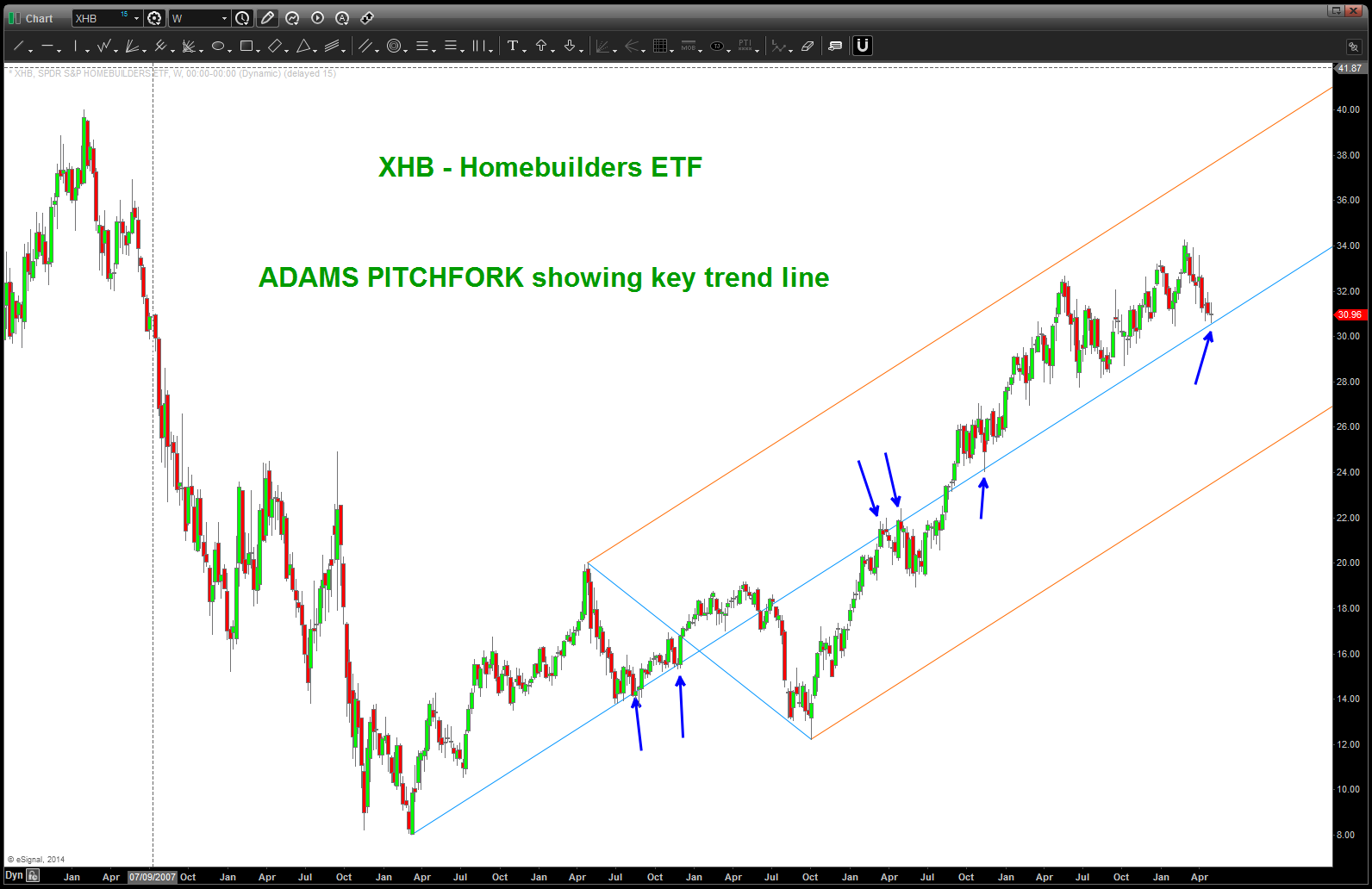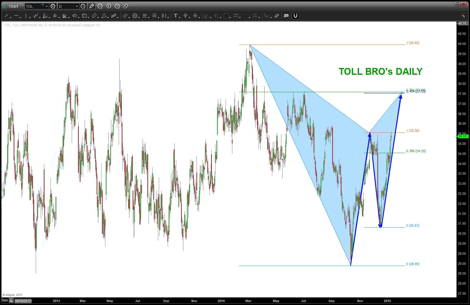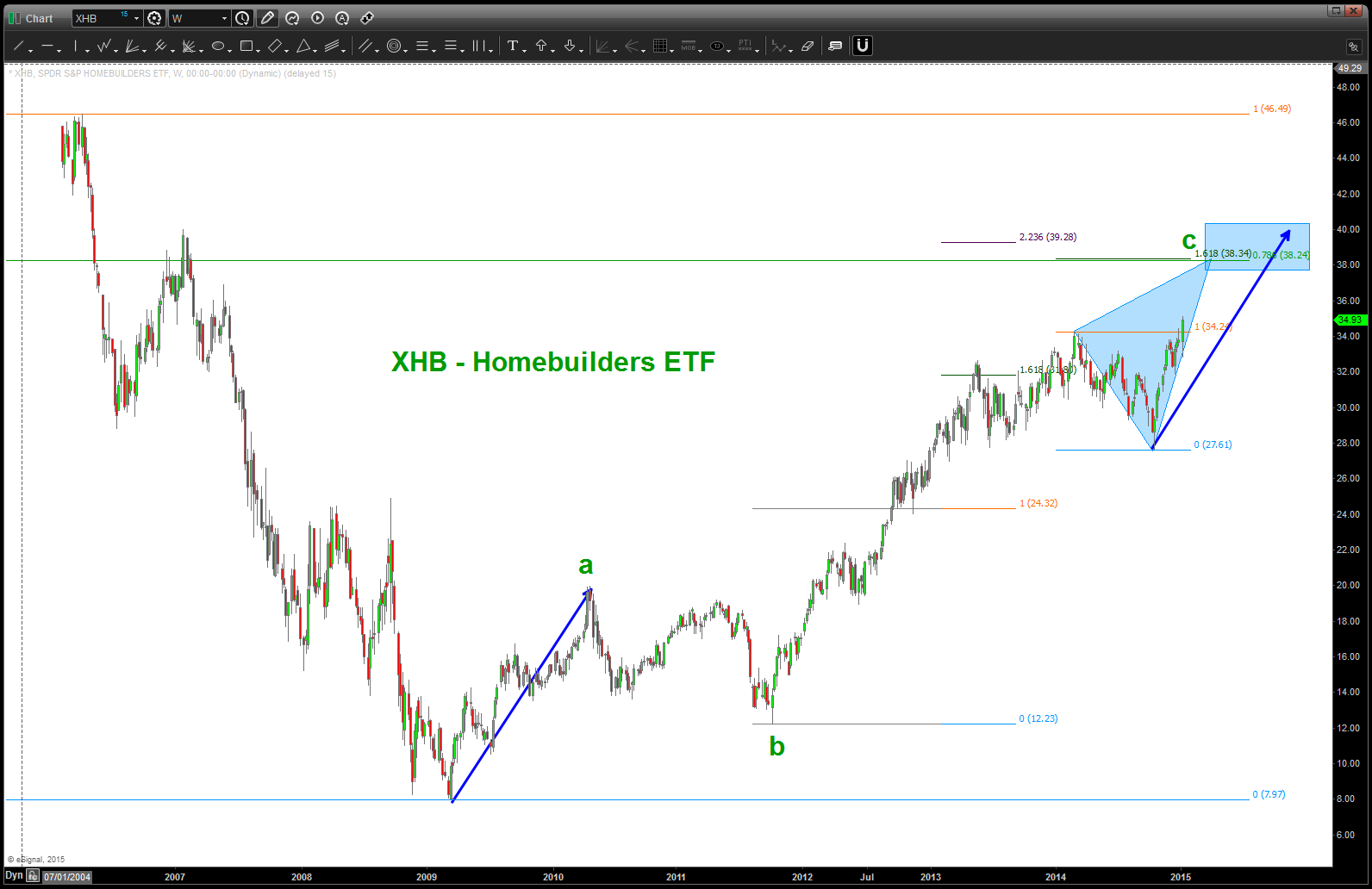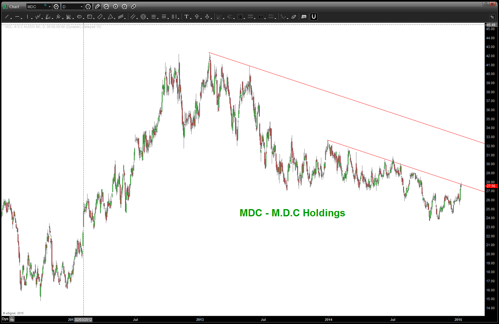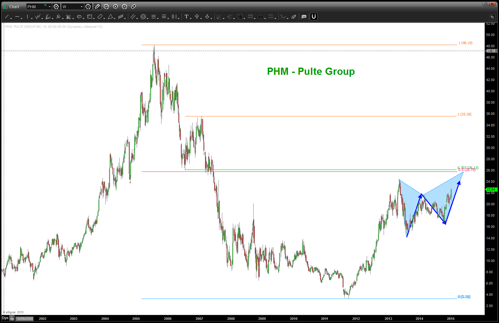 as you can see from below the Homebuilder Index (XHB) has broken out most recently from the congestion area highlighted in the link below and now has a target of 38. Not bullish or bearish – just a pattern guy. so, as you can see below, we are finishing a PATTERN but what about the top 10 holdings of this ETF?