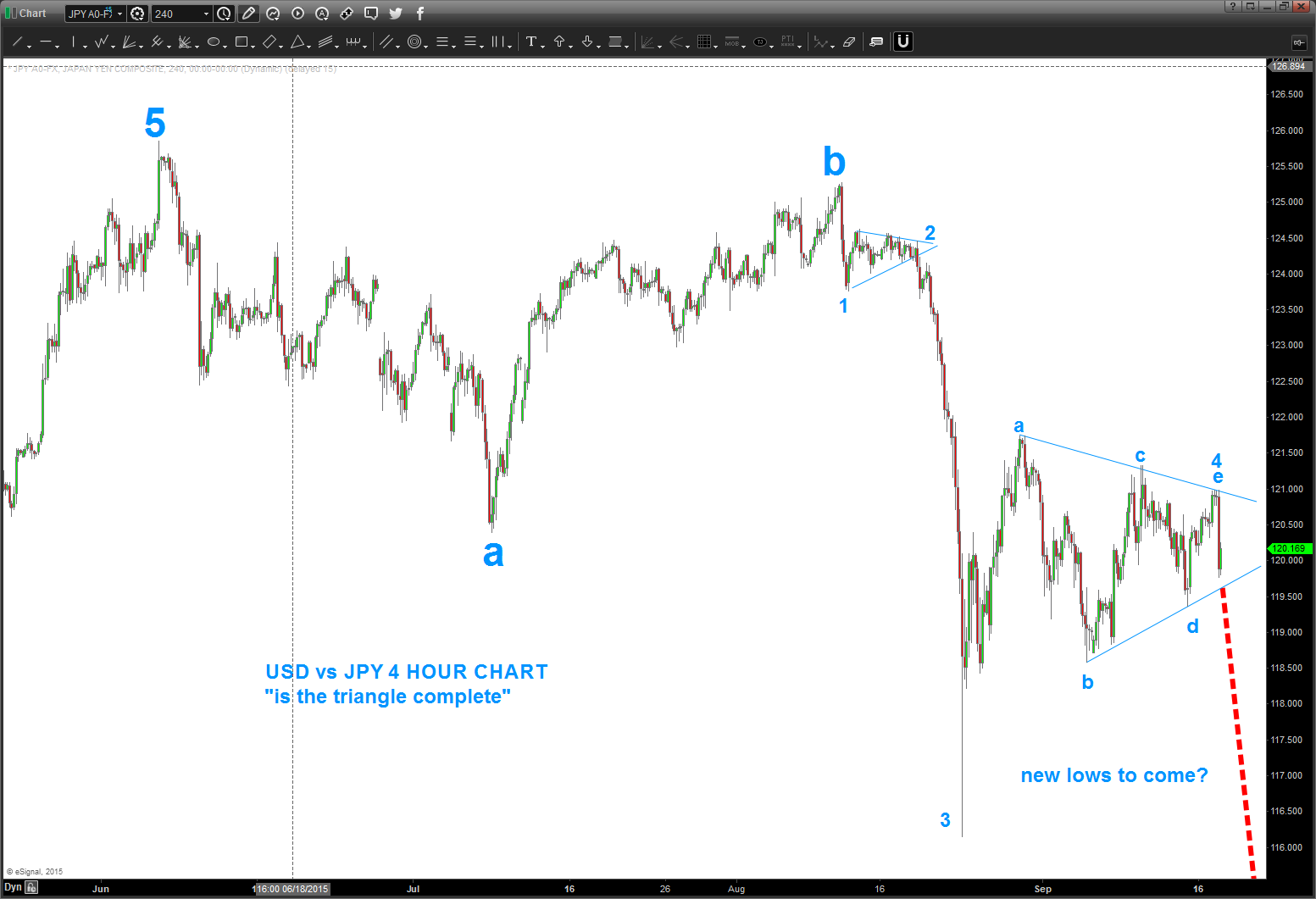 the JPY and a “high probability” 4th wave triangle … not good for stocks