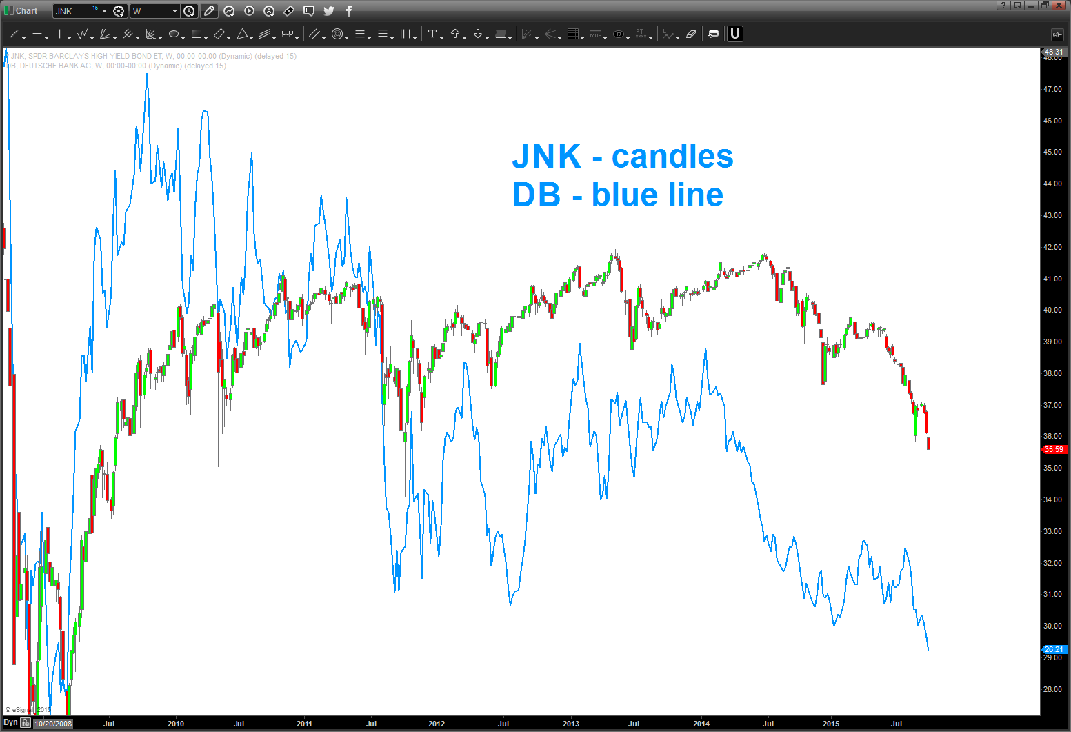also, take a note of the $DB overlaid on top of $JNK. they shake and move in the same fashion …when the worlds largest holder of derivatives is shaking and jiving w/ $JNK it makes me perk up. now for the “if-then”