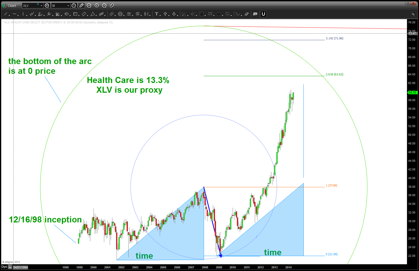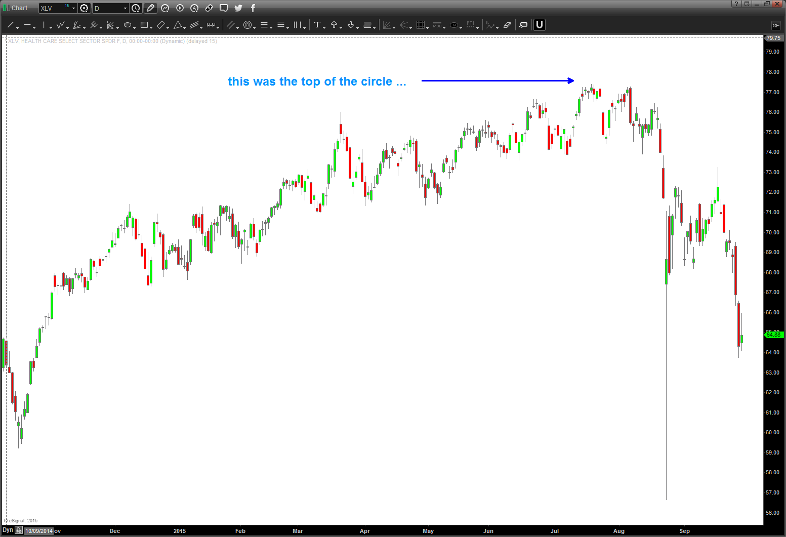 just saying … don’t believe me? here’s XLV as it took off and note – top of the circle was at 76. So, it missed it by a dollar .. shoot me.