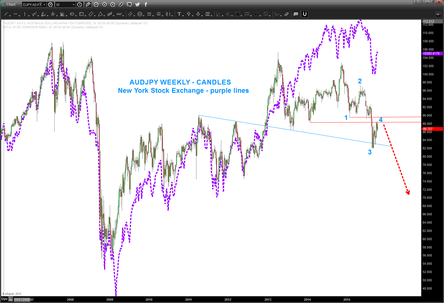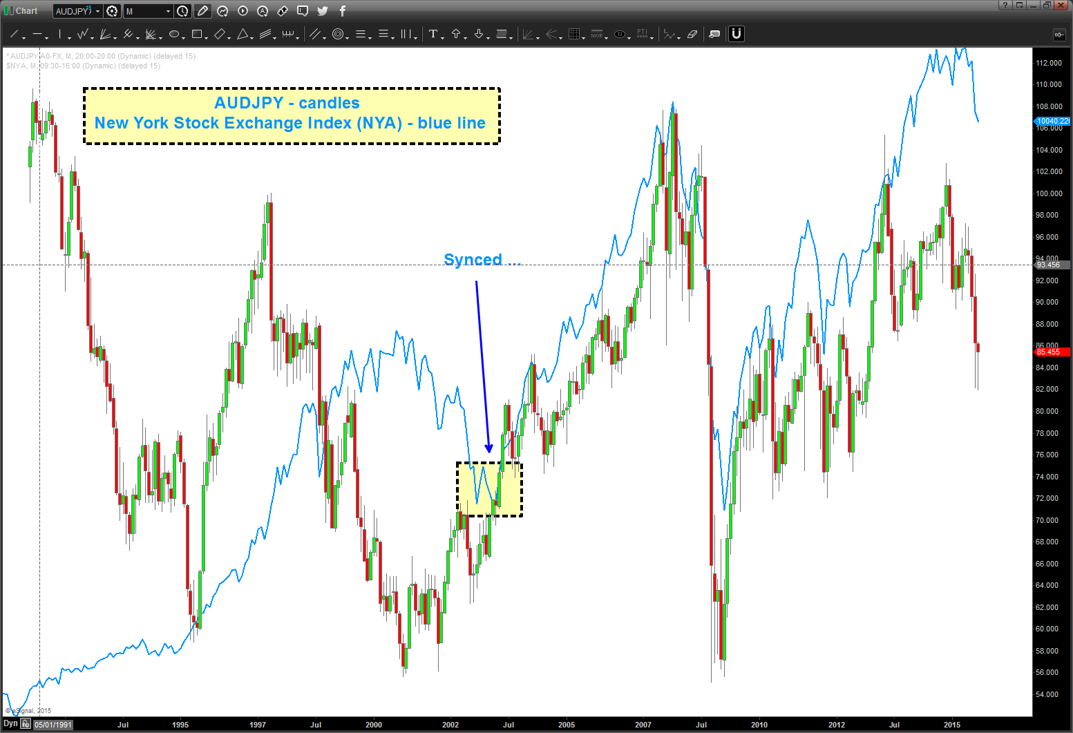 - NOTE THE CORRELATION BETWEEN THE AUDJPY AND NEW YORK STOCK EXCHANGE INDEX ($NYA)