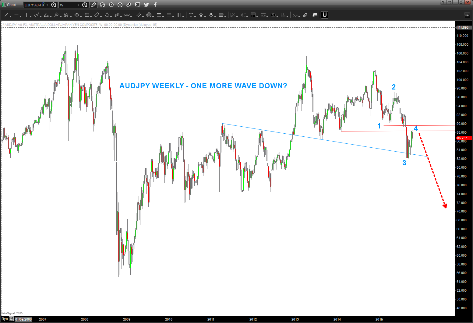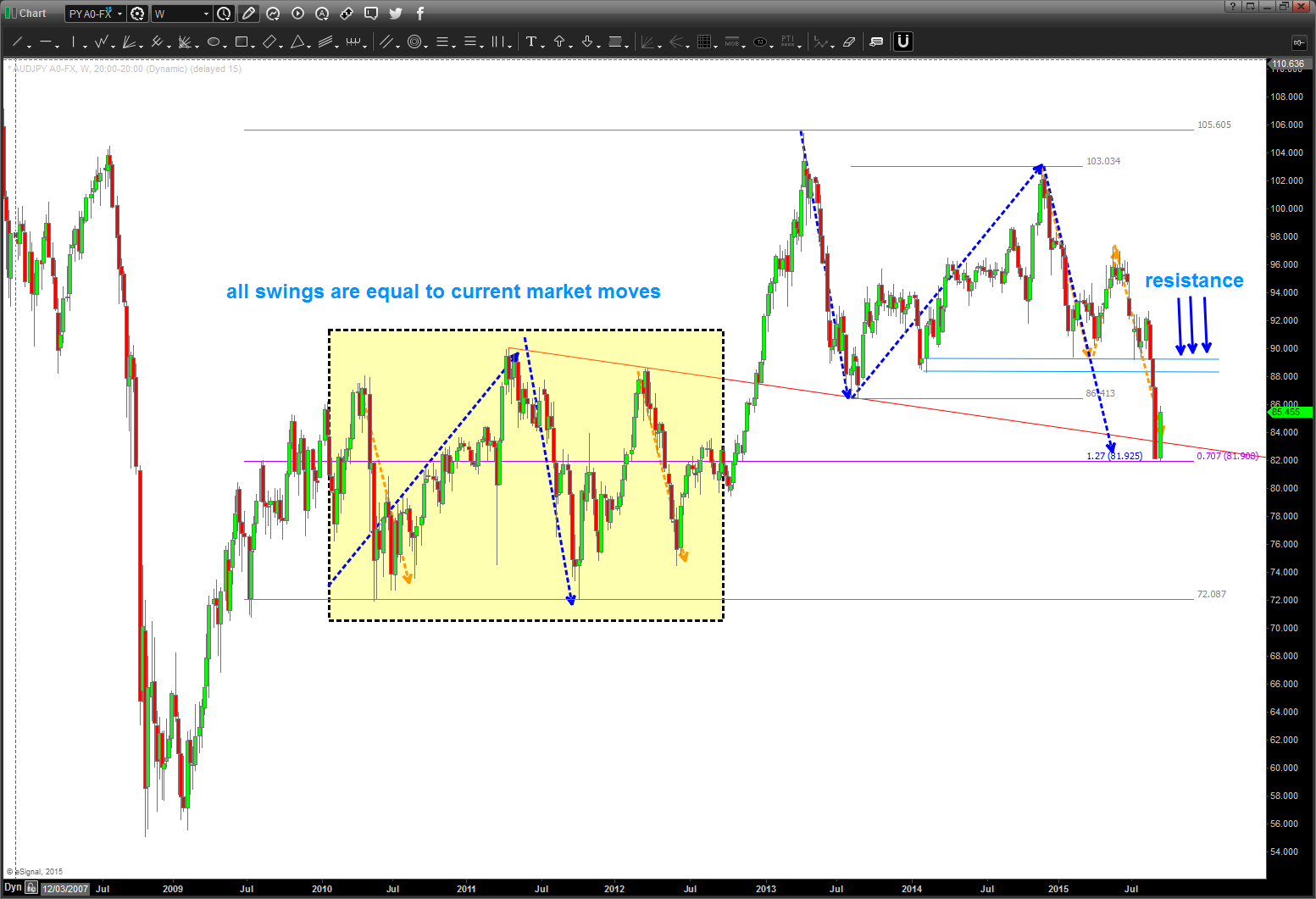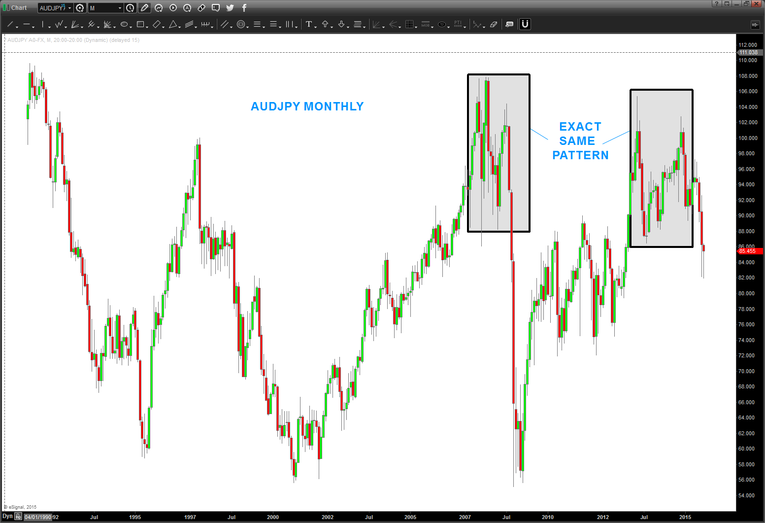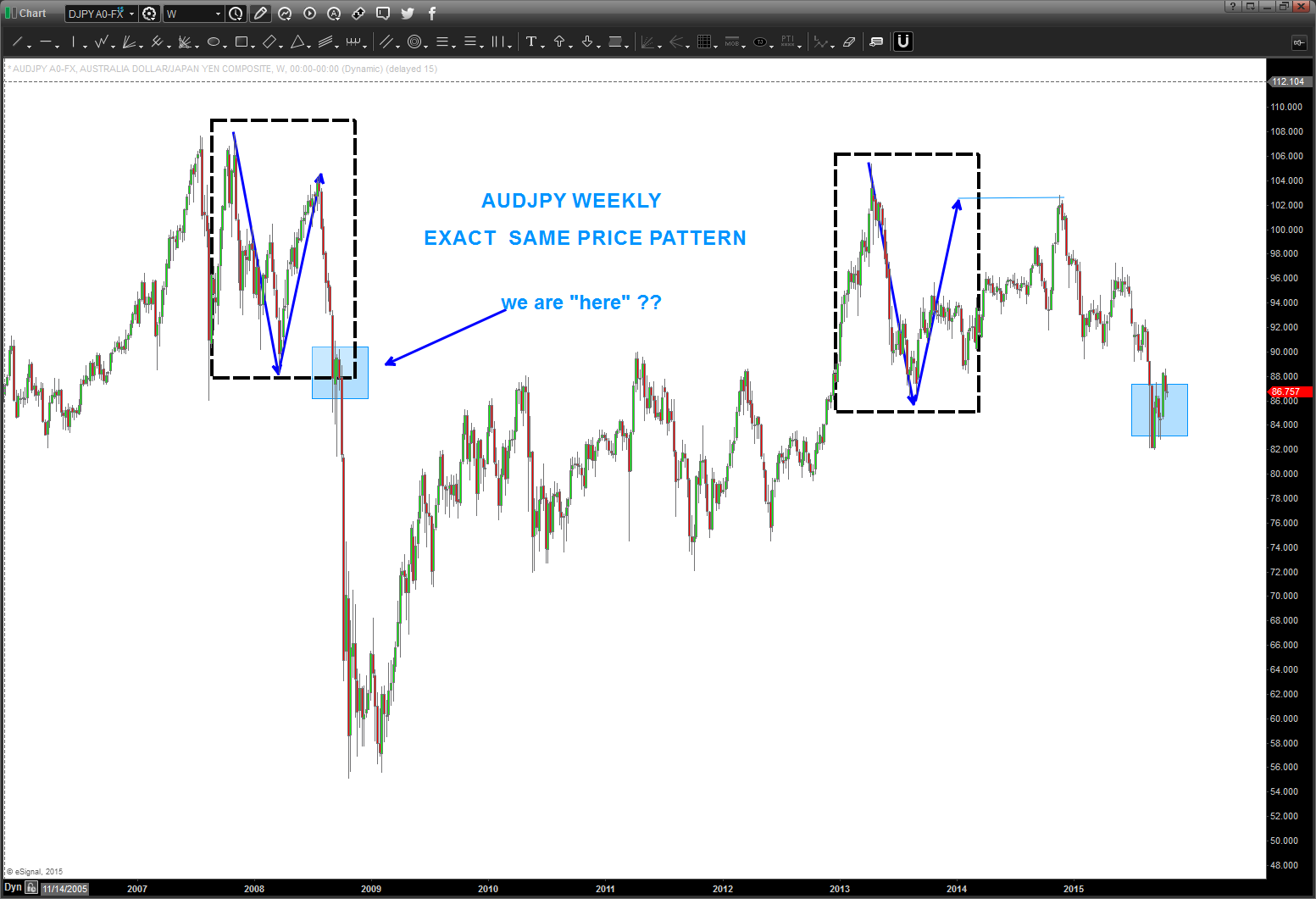 anyway – look at the PERFECT repeat of the pattern in 2007-2008 on the AUDJPY: