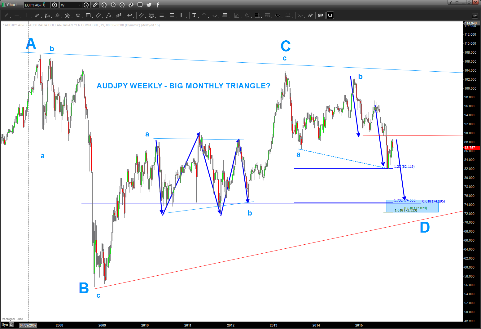 but I did want to spend just a little bit of time on the PATTERN that appeared on the AUDJPY back in November 2014. Yes, almost a year ago.