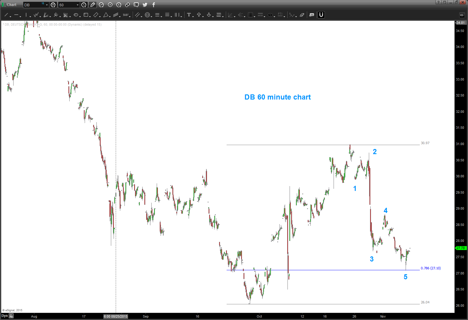 DB – largest holder of derivatives “alive” for now …nice 5 waves down into the .786. Expect a rally into high 20’s then back down again …?