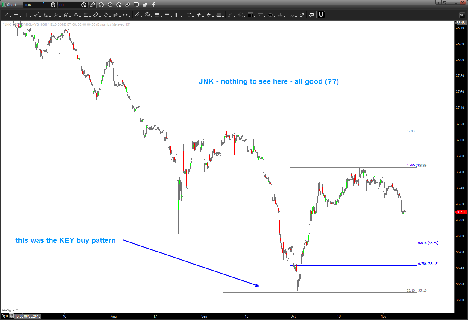 JNK … nice bounce from the 35 pattern. hit .786 of last swing and starting back down … hmmm? all good, all quiet on the Western Front, nothing to see here folks move along? Watch this one – closely.