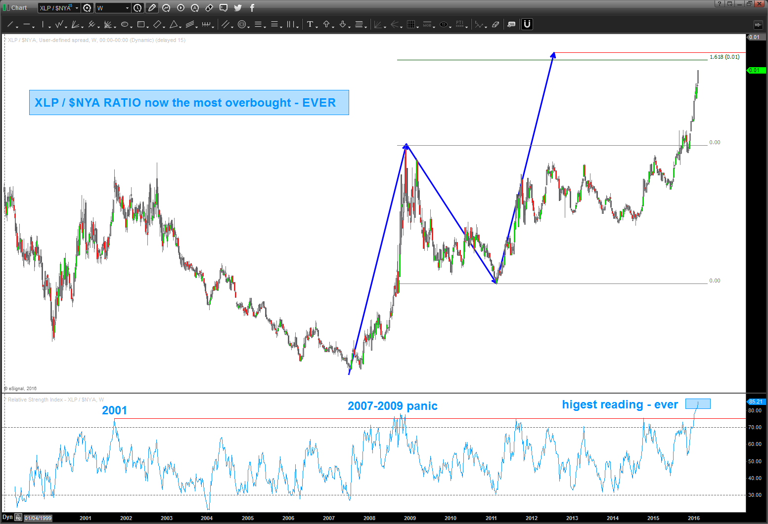 the probability that the ratio sells off (along w/ equities going higher) is increased due to the face that since the XLP came into existence, the RSI has never been this high …so, stay tuned but don’t go long equities till this pattern is hit …