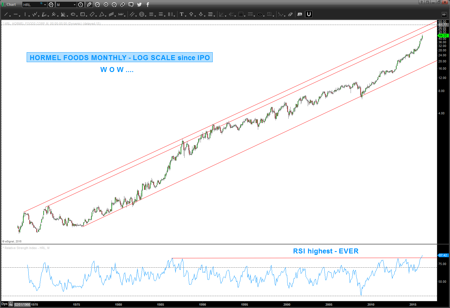 that’s a beauty …if was non-log. the above is what a parabolic move looks like and notice the RSI is the highest ever ….