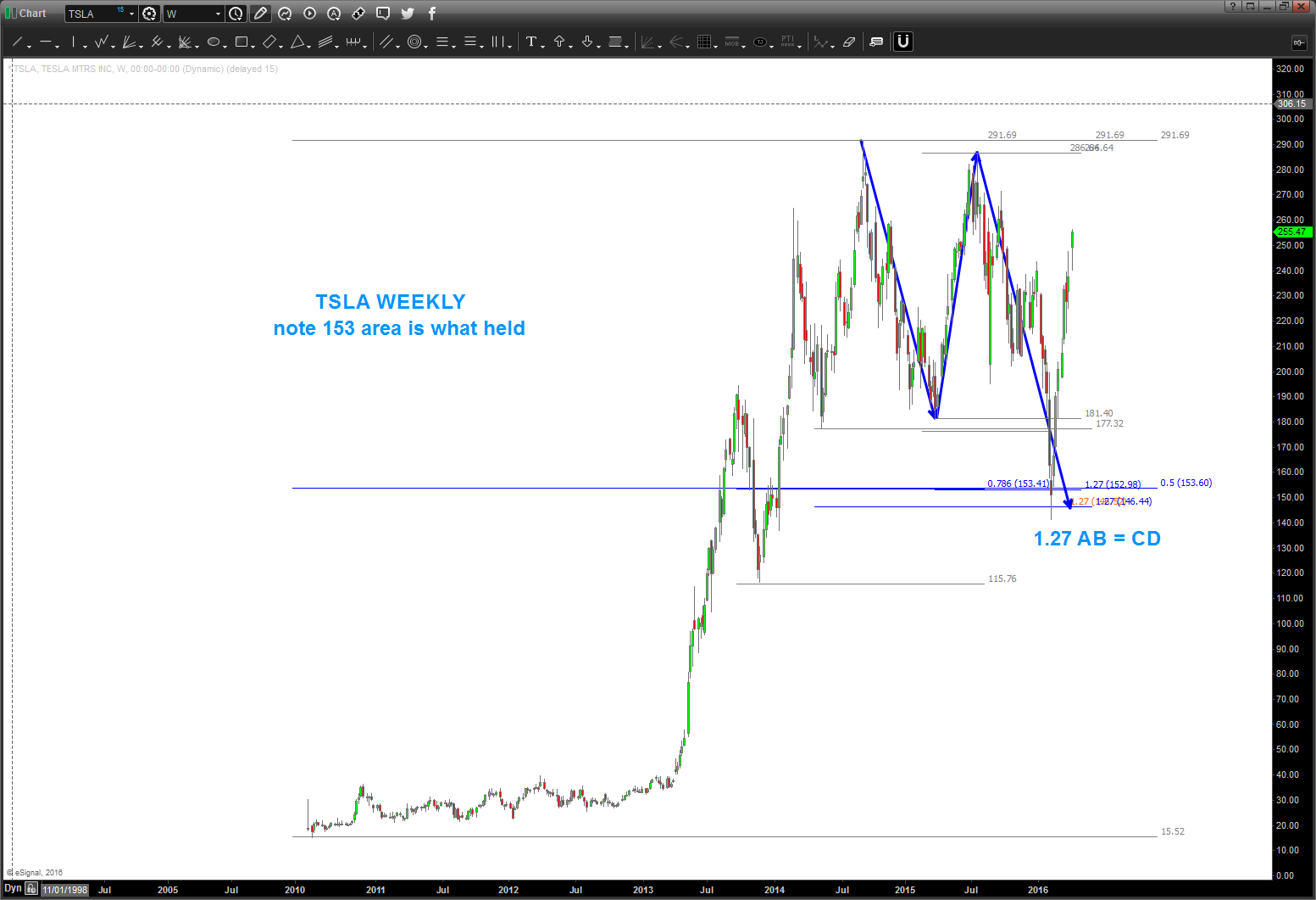 in this case for TSLA you can see it’s “respecting” the .618 retracement from the last low … EVERYONE is watching this level and horizontal support.