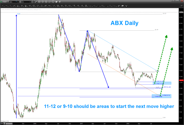 Note, ABX completed a nice buy pattern at 11.10. the 11-12 area is promising BUT wave counts could have 1 more move lower into the mid 9’s . either way, believe the next larger move is higher for ABX. if you look at the charts below, you’ll see the ‘reason’ for the low in the 6’s.