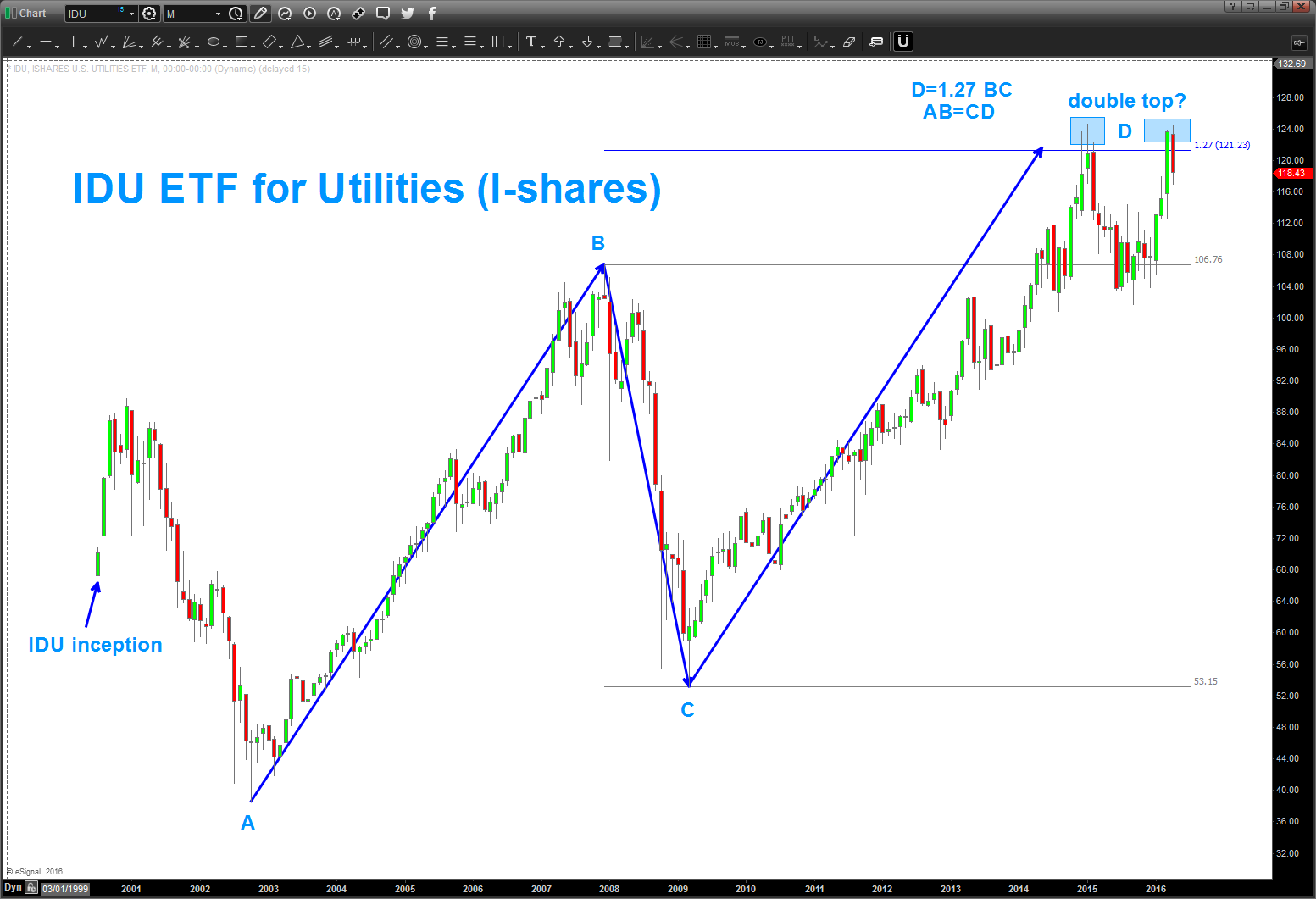 IDU is an ETF but it’s LONG Utilities … perhaps a short? Wrong above 124.