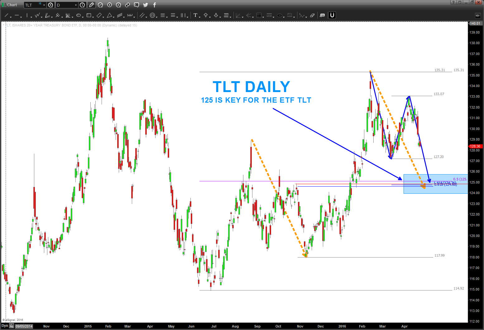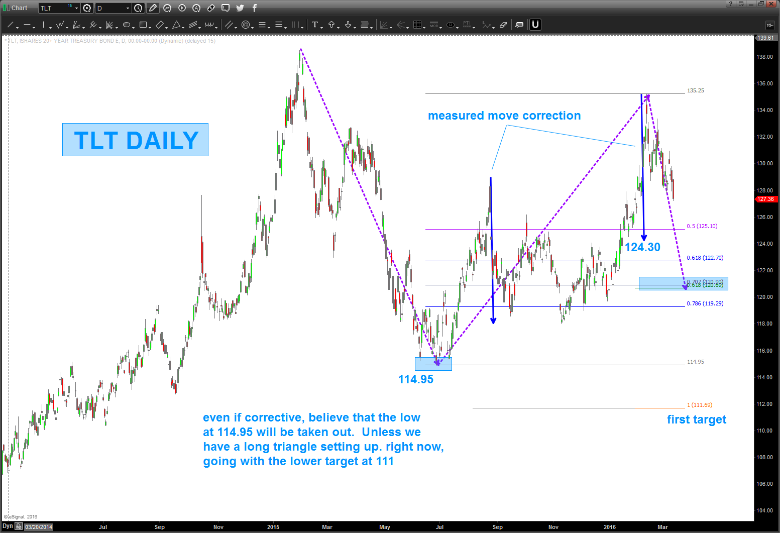 02/27/16 – TLT, if correct, should be losing steam over the coming days/weeks. Initial target appears to be 109-111.