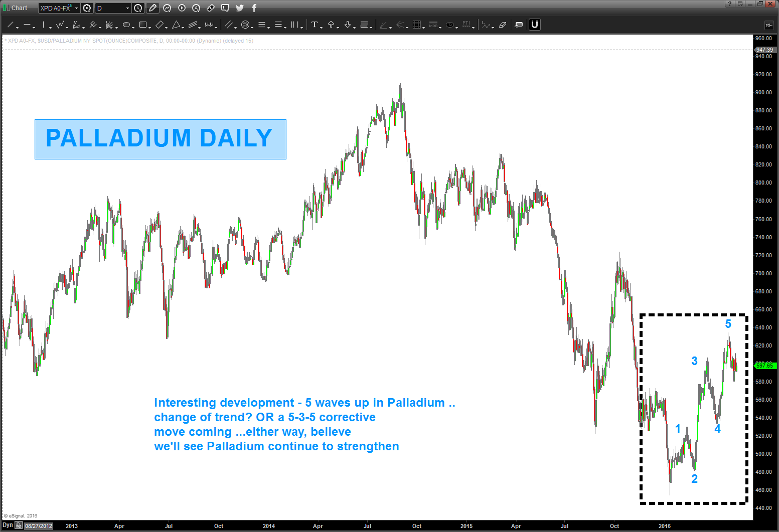 - What’s happening now …? Palladium has collapsed – big. And XLK has paused and held the highs … with XLK showing a clear 5 wave move up we might be on the verge of a big move in technology. (hint hint: perhaps the target on AAPL is a BIG LOW and off they go?)