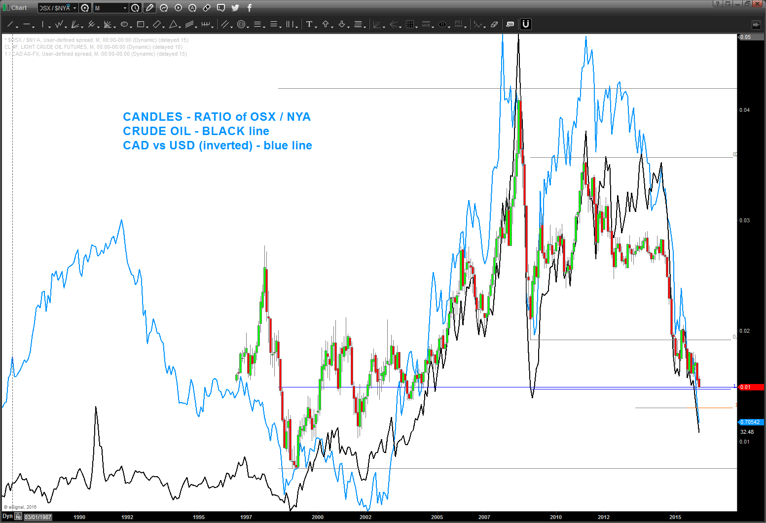 below that is crude and CAD vs USD (USDCAD inverted) overlaid on top of the ratio.