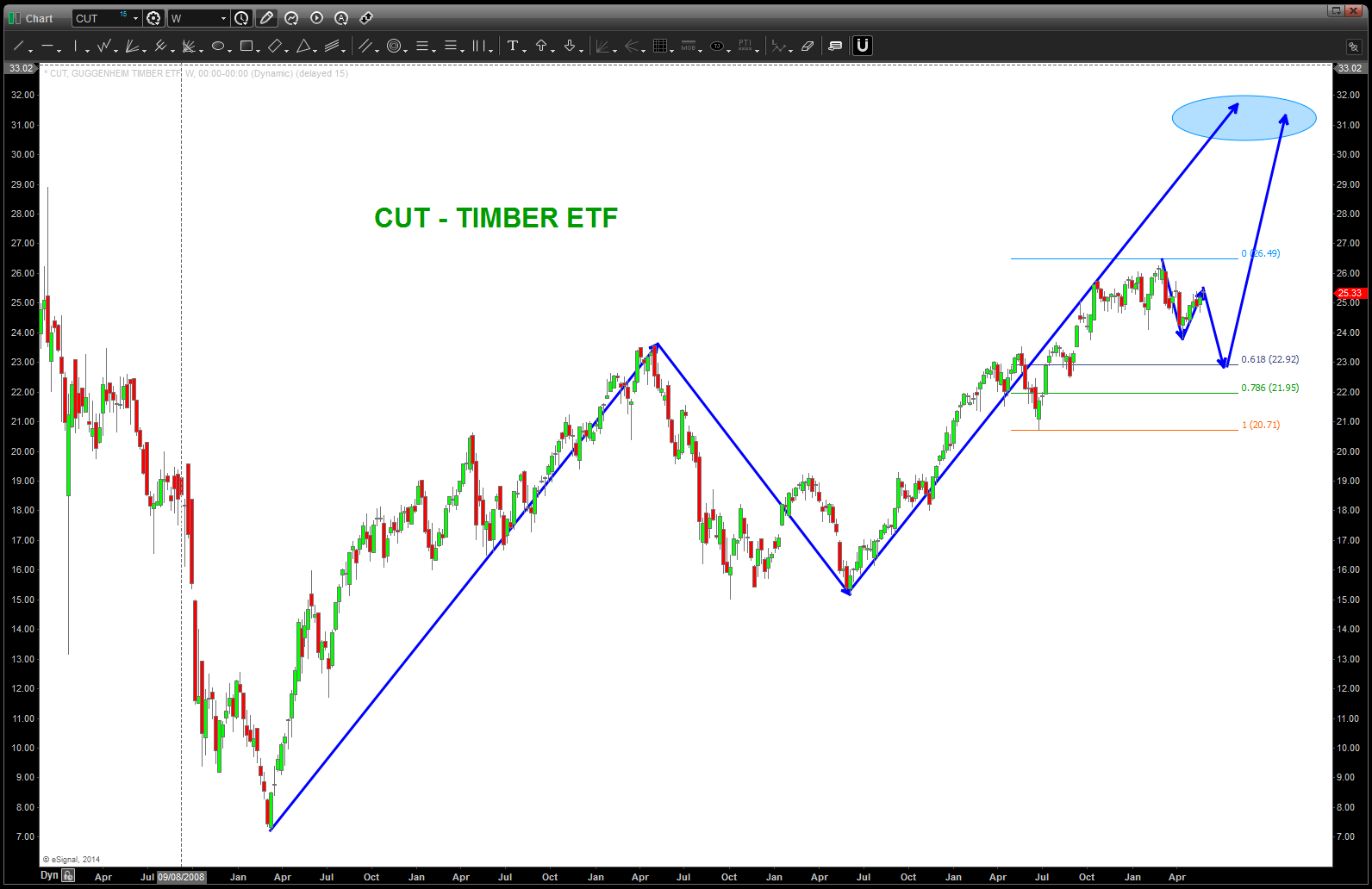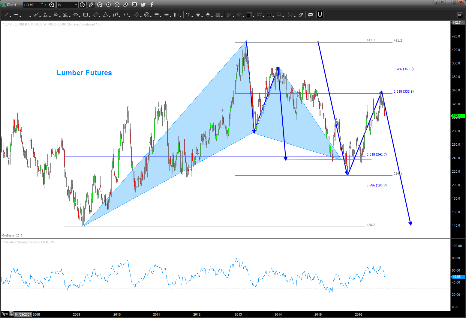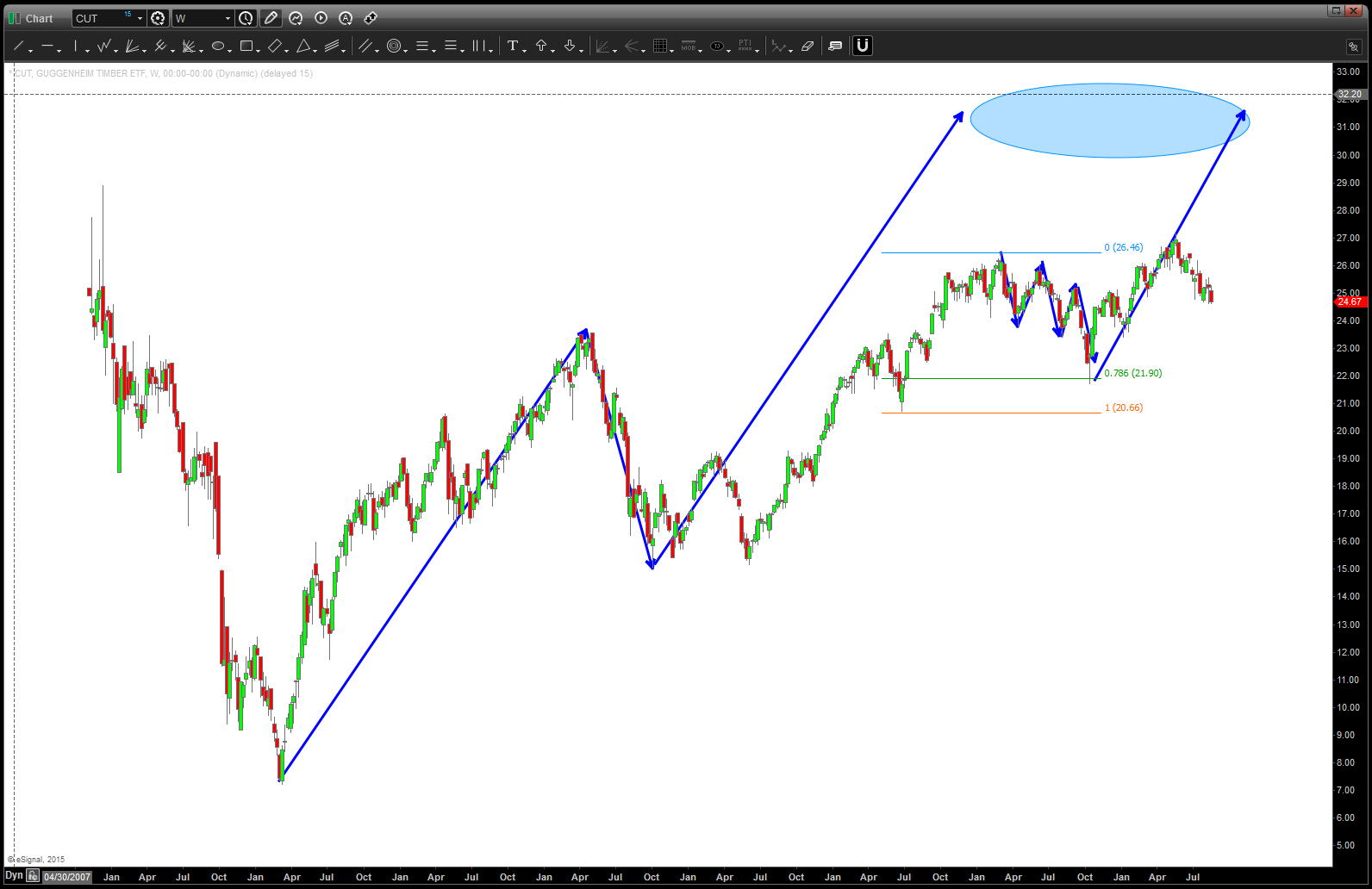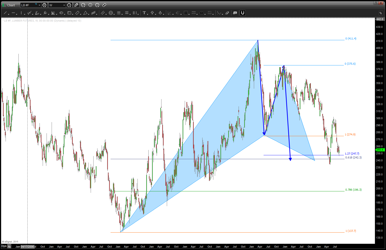 CLIFF NOTES: below is a weekly continuous contract of the lumber futures.  all the ratios come together at 241-242.  this is a very nice one….stay tuned. might/could find support a little lower and then it’s off to the races in/around here but the larger pattern is very nice.  appears bullish from a WOOD/CUT/Lumber Futures perspective.