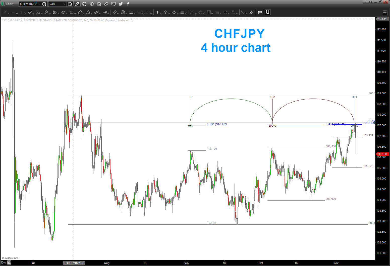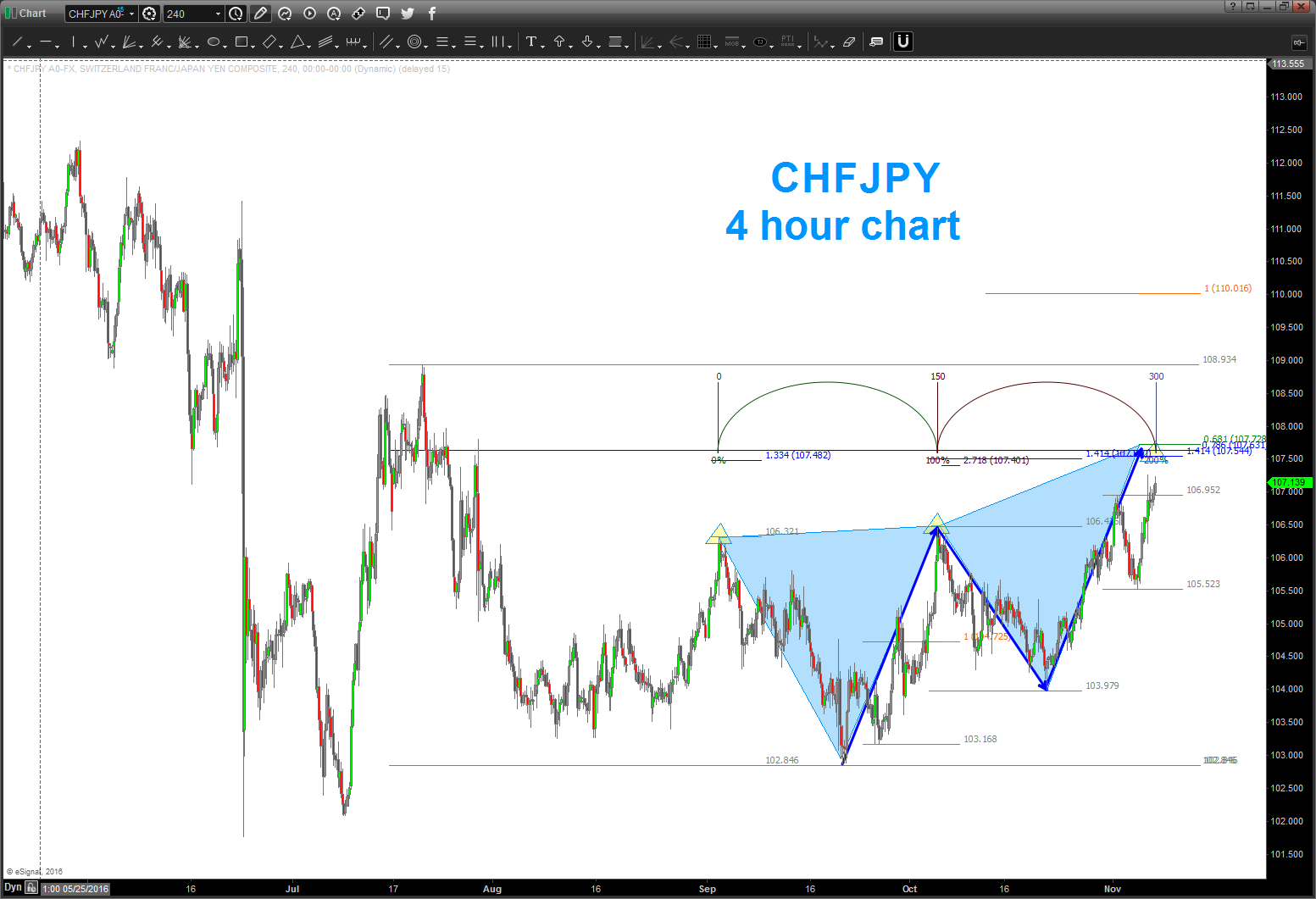 I have no idea what’s going on in the election … I can surmise by the markets that perhaps Trump has a lead? Really don’t know … but what I can say is this little pattern on the CHFJPY hit this afternoon to the pip and well … see below.
