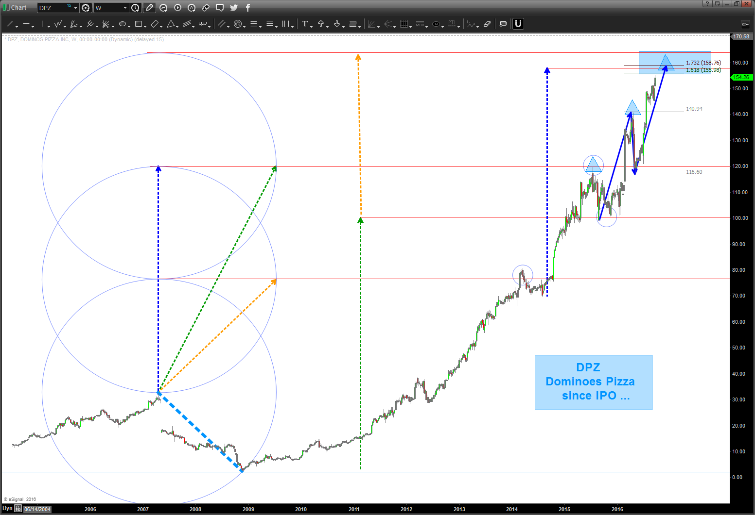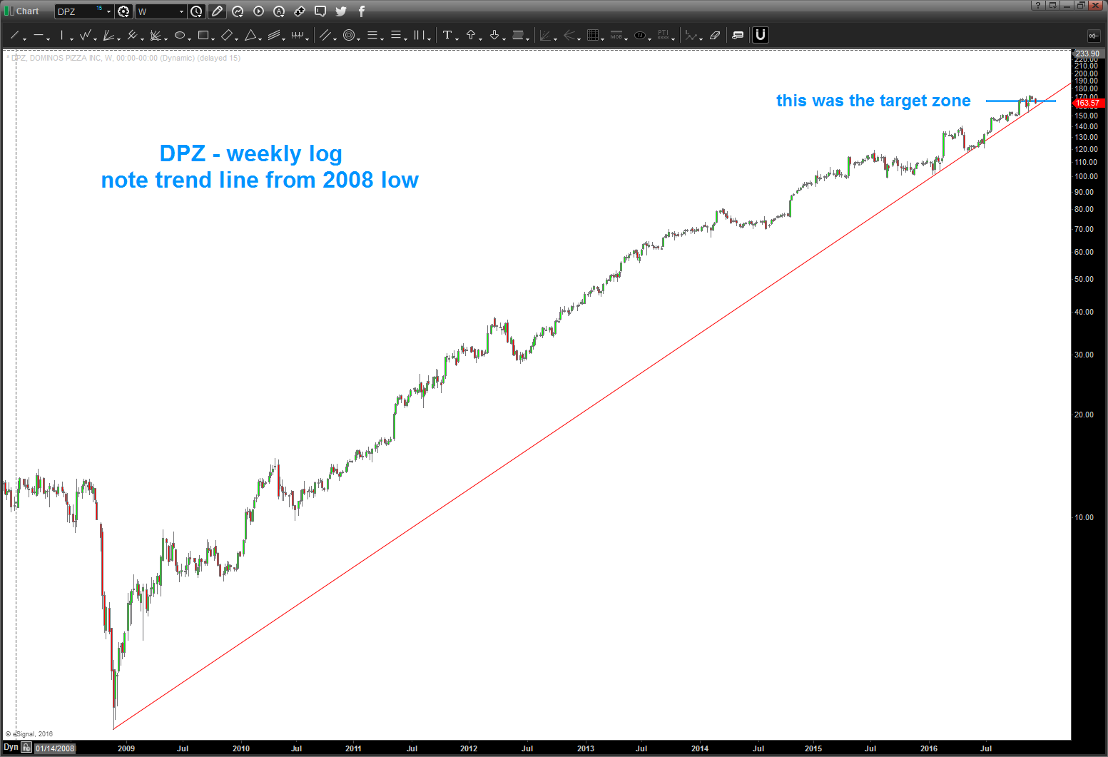 12/9/2016 – area shown in the original post was exceeded by a percentage point or two but we should be a stiff resistance w/ DPZ. Note, the long term trend line from 2009. a weekly close below this would signal the trend is weakening or done.