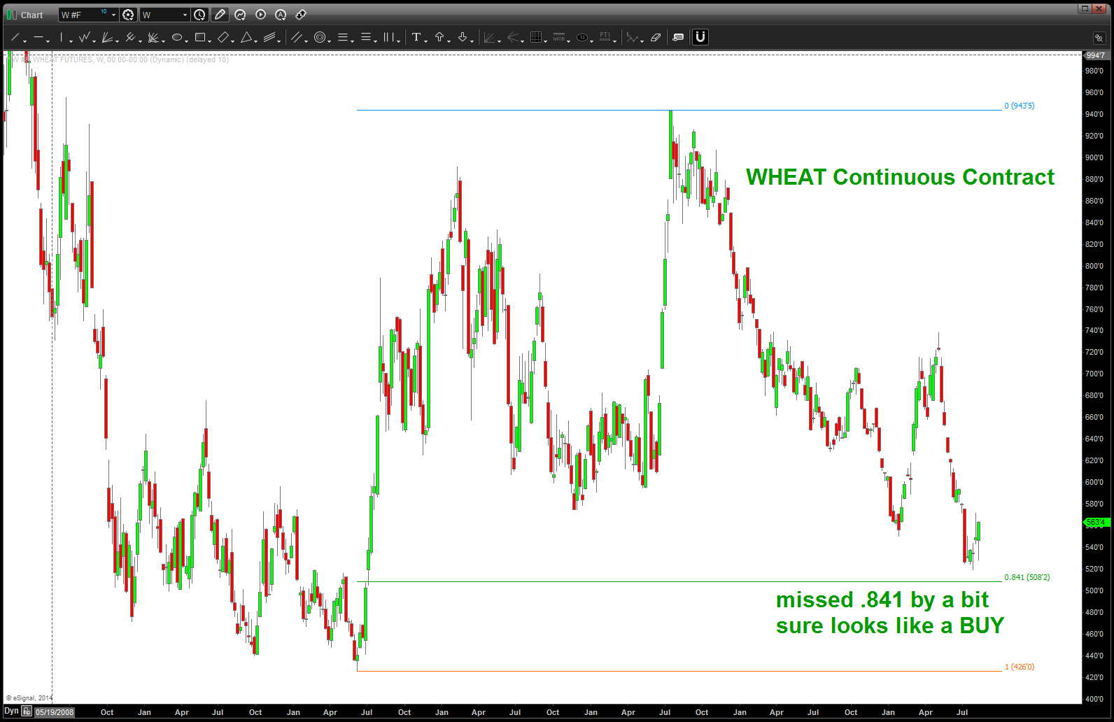 CLIFF NOTES: Corn and Wheat have hit their targets. Would still see risk below the .841 retrace on Wheat but believe these patterns are complete. Need to wait a little while longer on Soybeans …