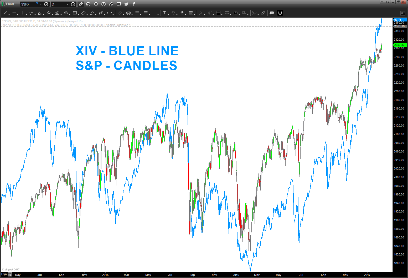 here’s what the XIV and the S&P look like together …