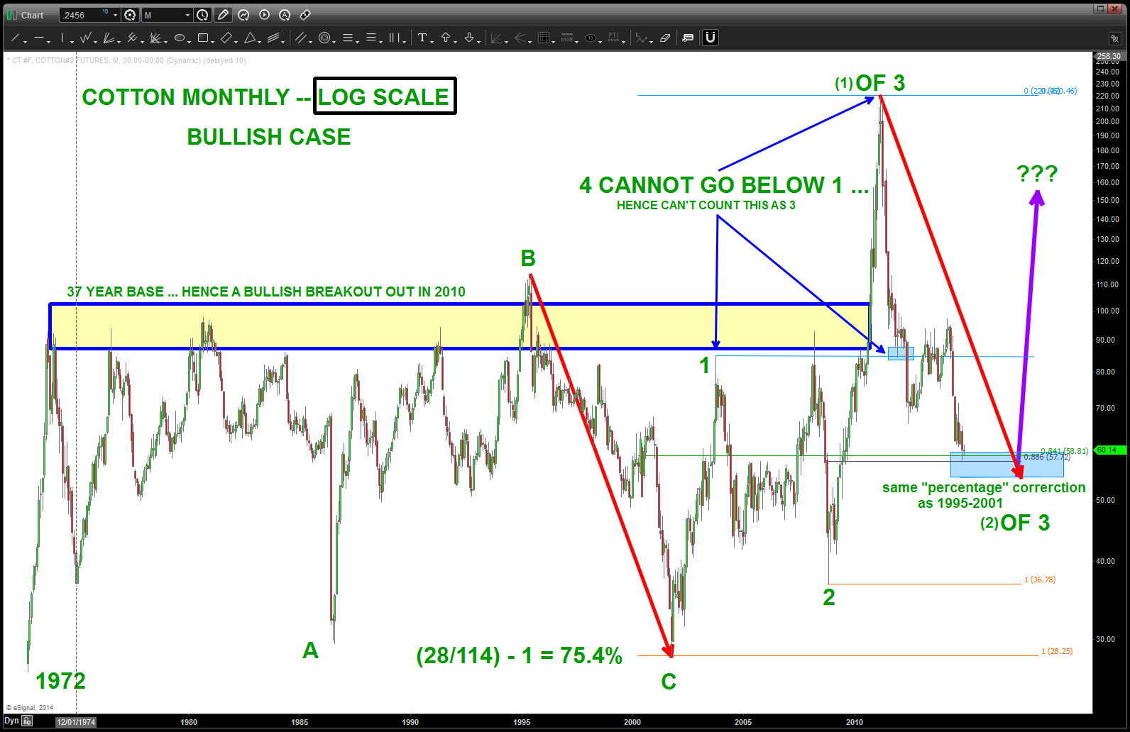 Cotton’s up around 46% from levels described above. Folks, LOG percentage measured moves (extremes) work.