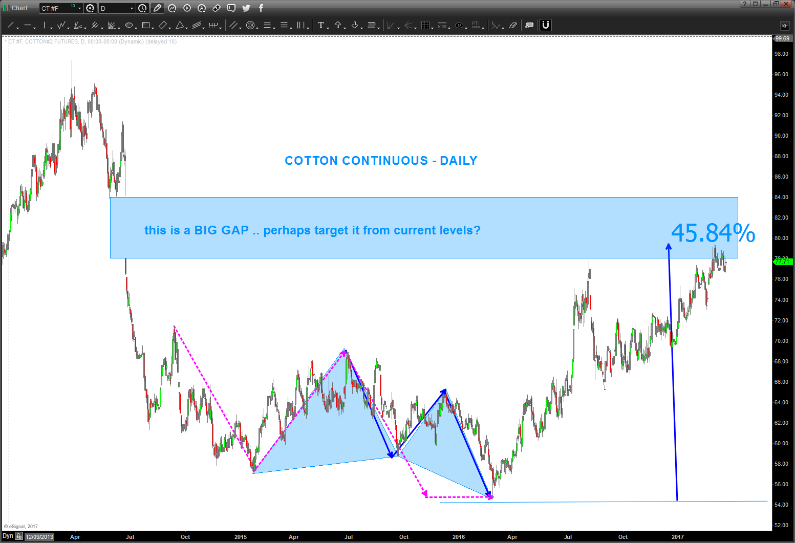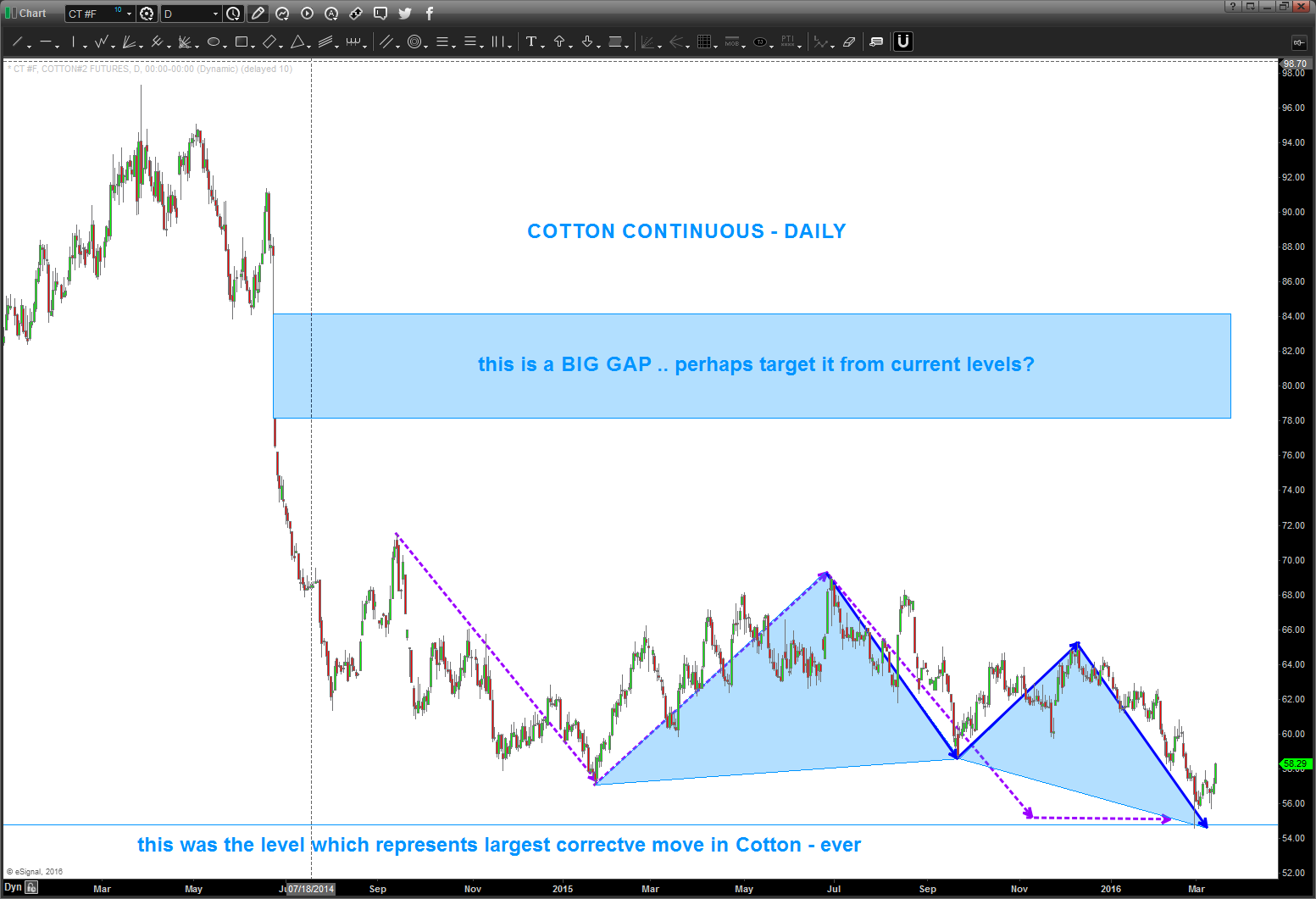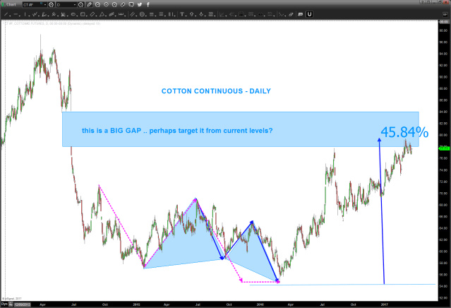 03/22/2017 – cotton has went up and tagged the lower boundary of a BIG GAP. “should” be pausing and pulling back …