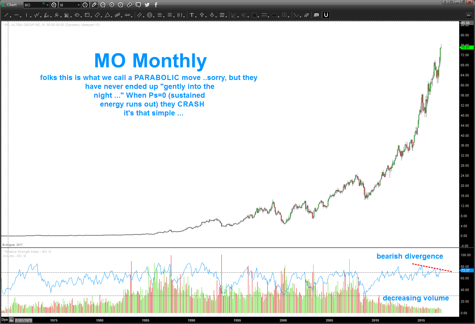 folks, same thing happens w/ stocks. IF you can get into a pre-parabolic move based on your decision criteria (technical or fundamental) then ride it and go w/ it …. however, once you “sense” the parabolic stage then take some money off the table. I’m going to say it again … they have NEVER ended well. and depending on the size of the motor taking you straight up – it will eventually fail. Gravity is real in both a physical and subconscious way. Subconscious? Yes, the euphoria of the monster bullish move and the despondency of the bearish move will, eventually, yin-yang you and take off in the opposite direction.