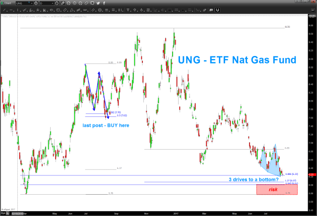 as for UNG – note the last post had a pretty nice BUY pattern and it hit then tallied up to the 9.45 area. sure looks like a BUY in/around here w/ a stop out below 5.75 could be a play IF this is going to rally.