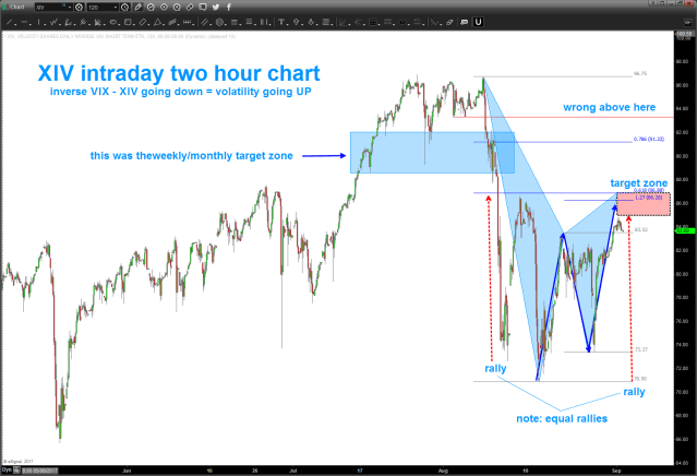 that being said, you can see we were looking at 88-90 ish as potential targets for the XIV but also noted the ‘big candle’ warranted caution for a top/resistance.