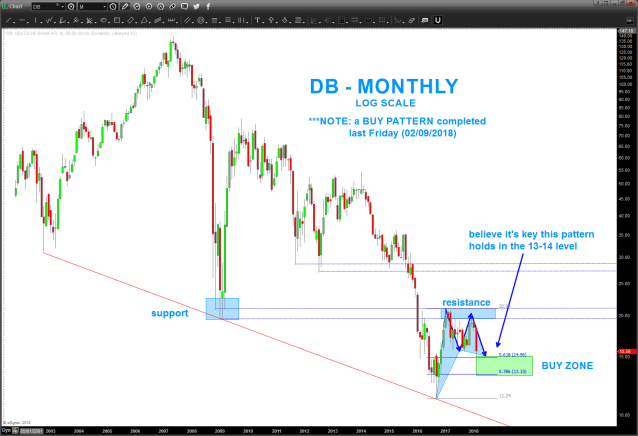 So, put DB on your watch list and see if the 13-15 level holds … if we break thru these levels to the downside, watch out as it’s going to get very interesting.