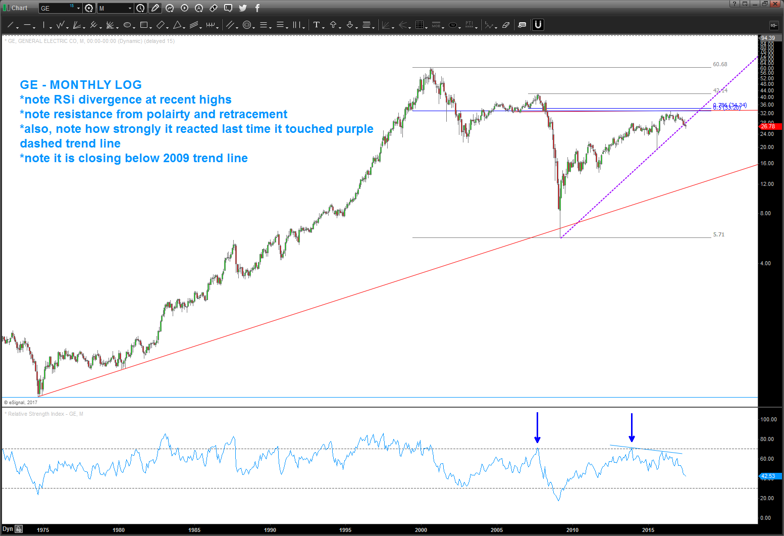 03/31/2017 – I like the .786 level in/around 10.95-11.56. Note the percentage change from the 2000 high (-64.69%) and how that same percentage change is present now right at the .786 retracement. We are at 40+ years low on the RSI and some overlapping ratio’s. It’s do for a very nice bounce.