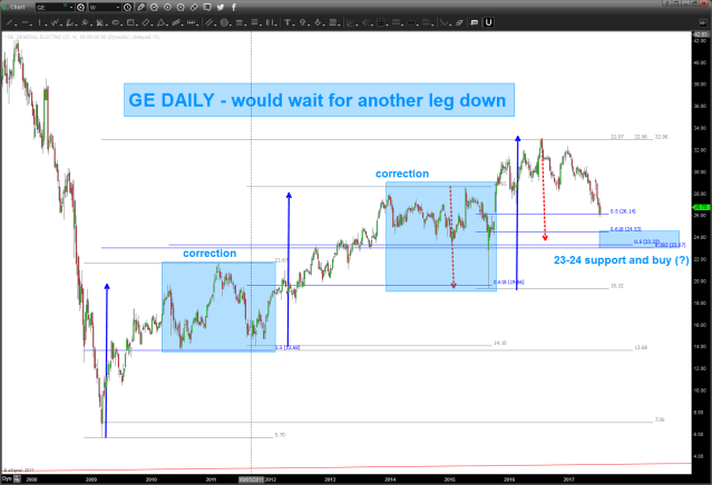note all three legs up (blue arrows) were exactly the same and so this move down was to be expected. using the last ‘big’ move down as a projection and it comes into that 23-24 area.