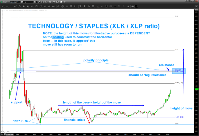 XLK/XLP – going up w/ strength. the big guys (institutions) aren’t showing a ‘risk off’ mindset. the XLK/XLP ratio move up is the LARGEST SINCE THE LOW OF 2002.