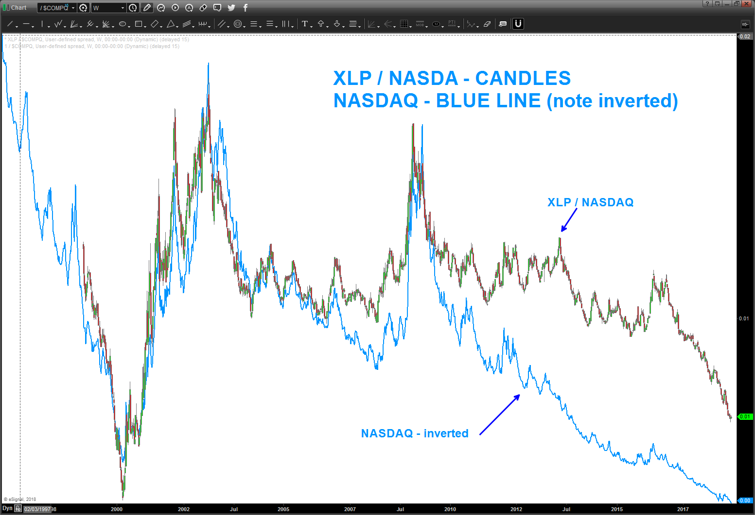 so, here’s the XLP / NASDAQ and it paints a nice picture.